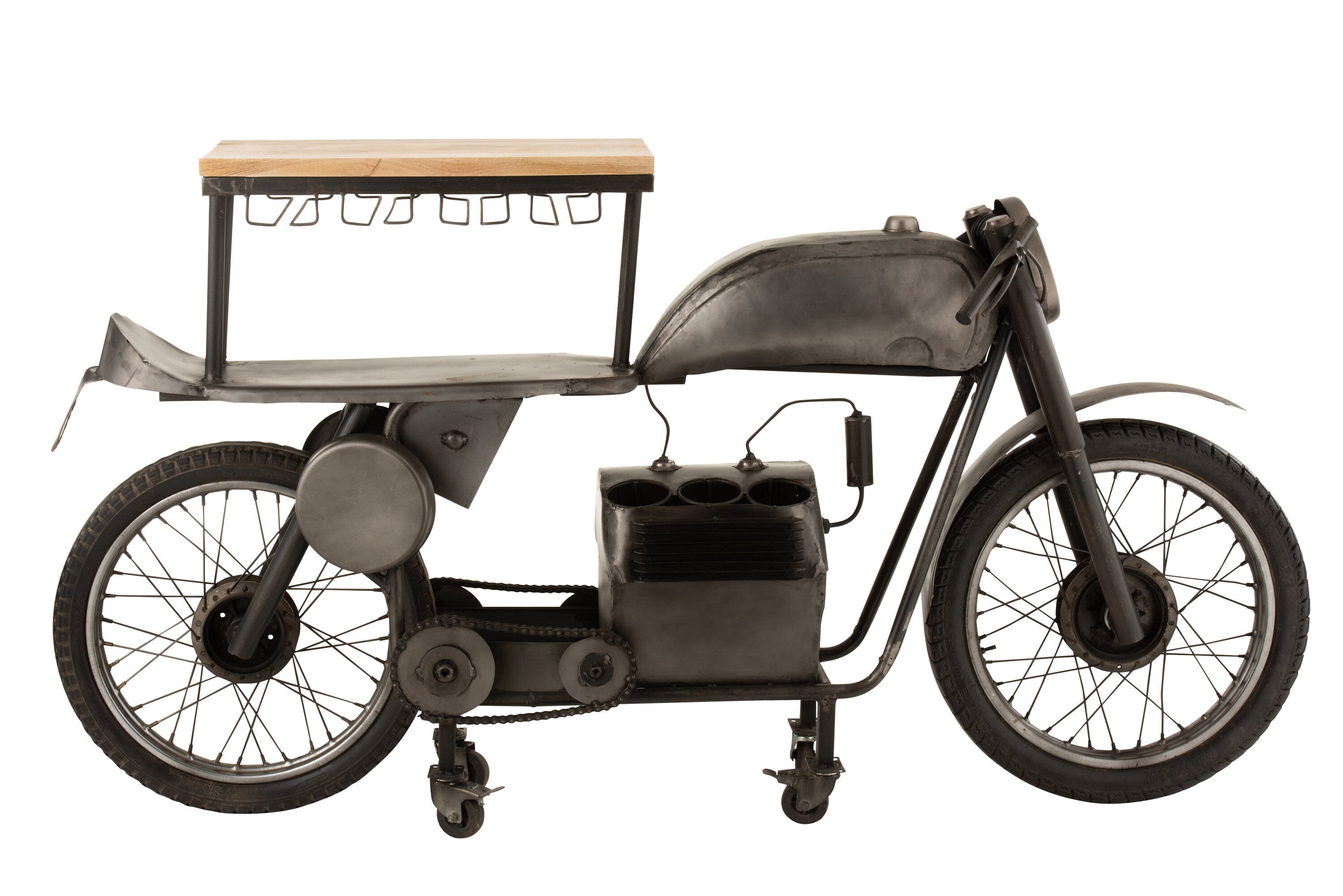 J-Line barkast Motorfiets 12 Glazen + 6 Flessen - metaal|hout - donkergrijs