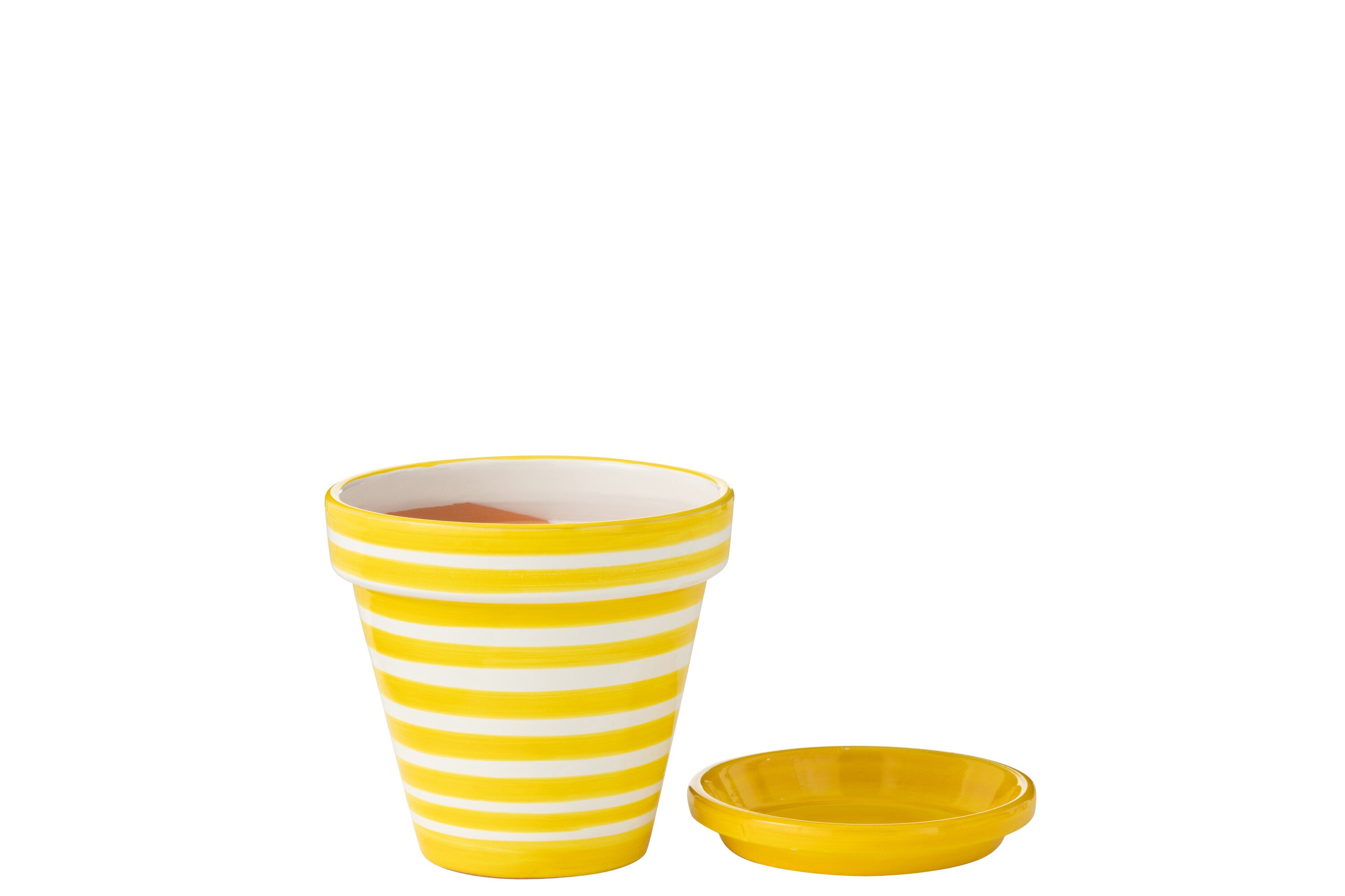 J-Line bloempot Granada Stripes Handmade + Painted - keramiek - geel - medium - Ø 27 cm