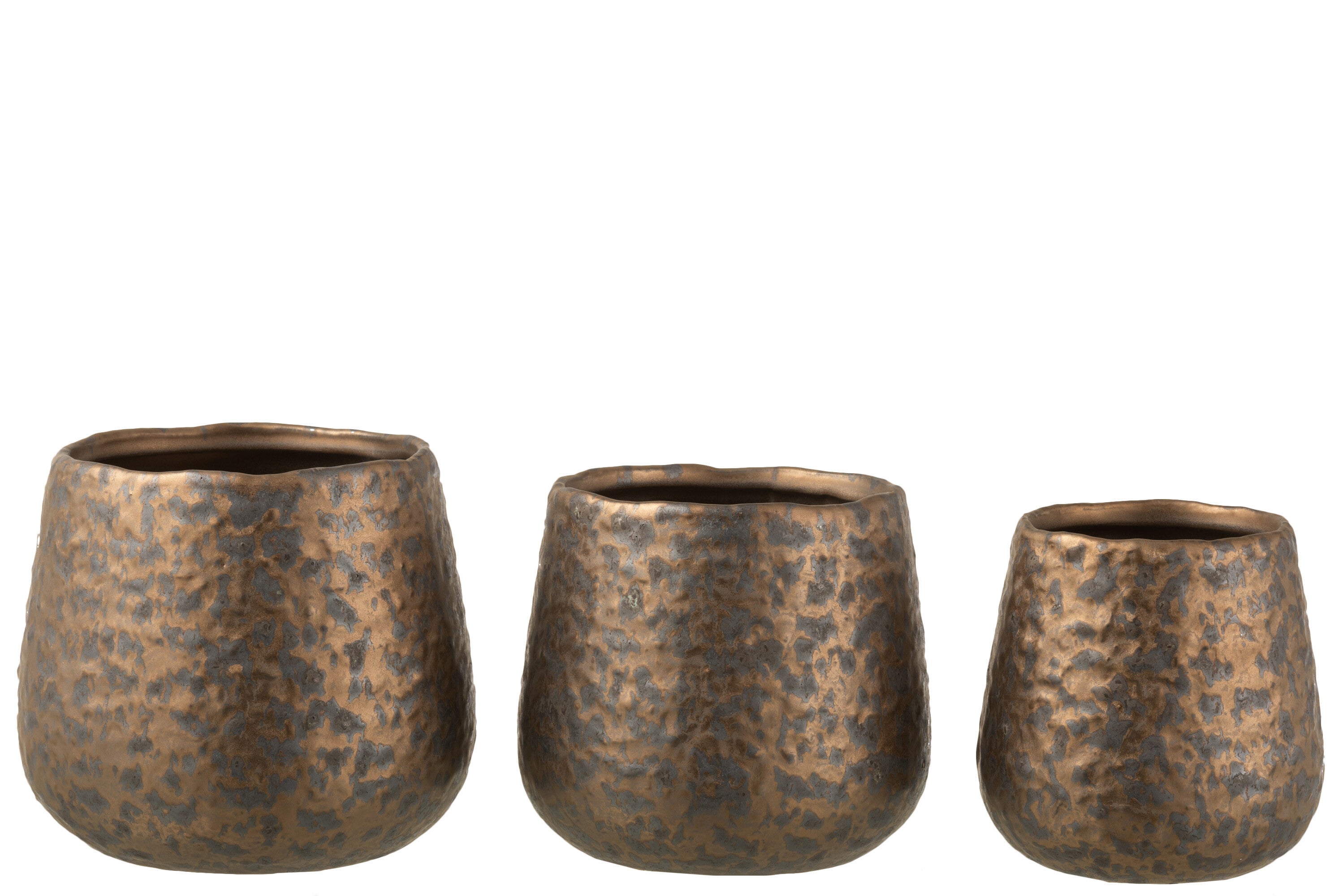 J-Line bloempot Spikkel Rond - keramiek - koper - large - Ø 16 cm