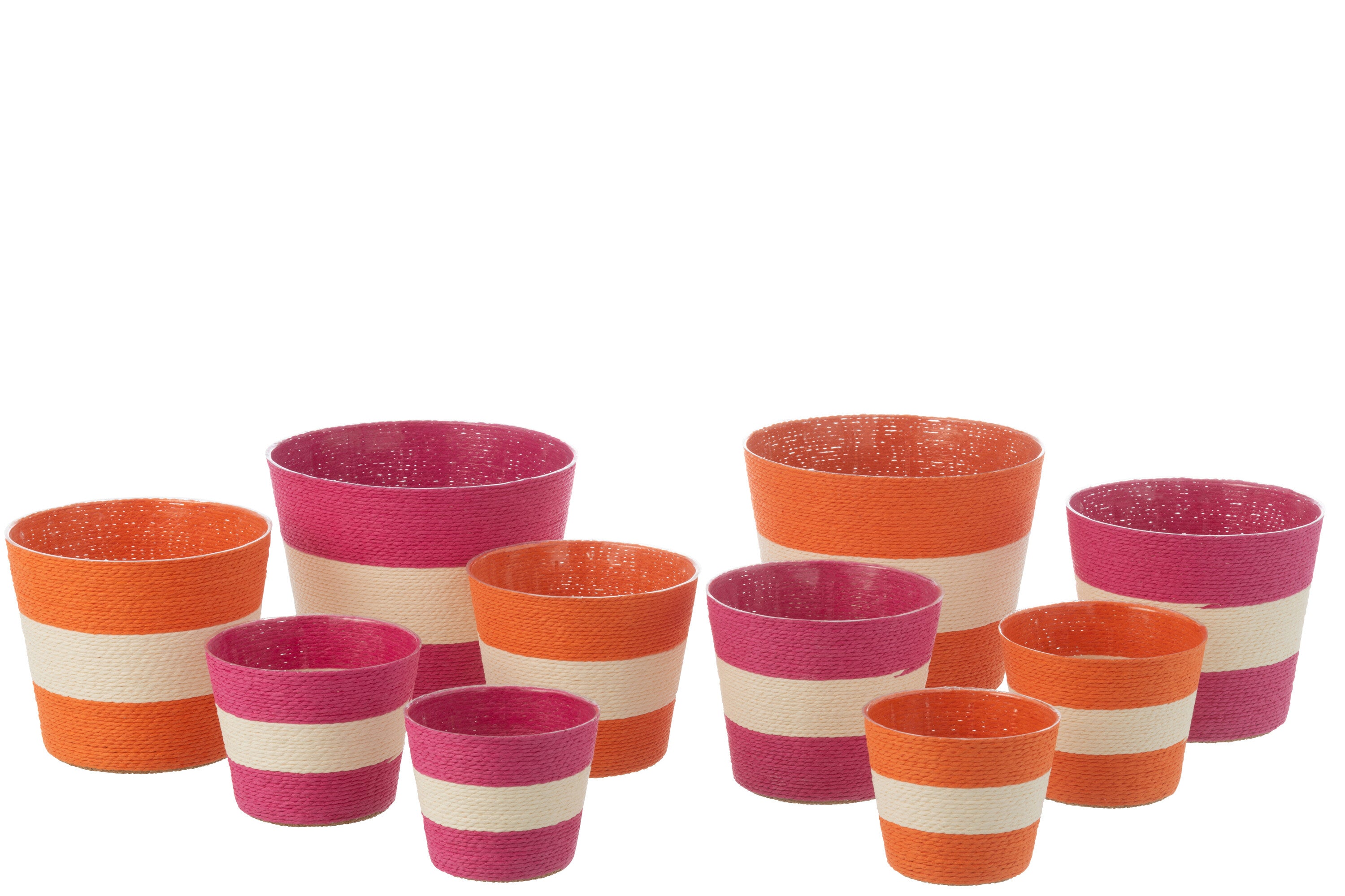 J-Line bloempot Touwtjes Streep - papier - roze|oranje - ext