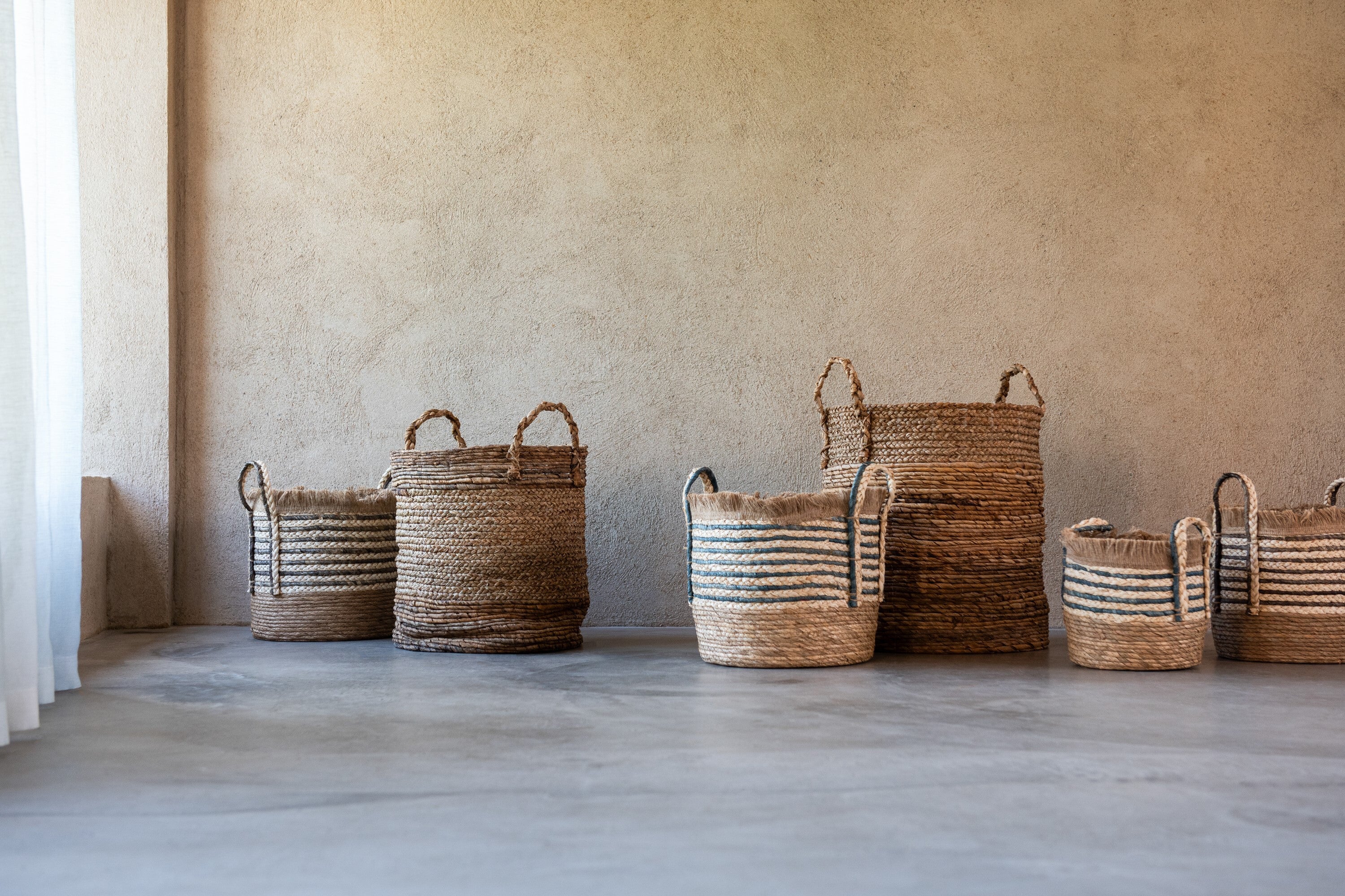 J-Line bloempot Ubeda - riet|kunststof - naturel|blauw - 3 stuks - Ø 29 cm