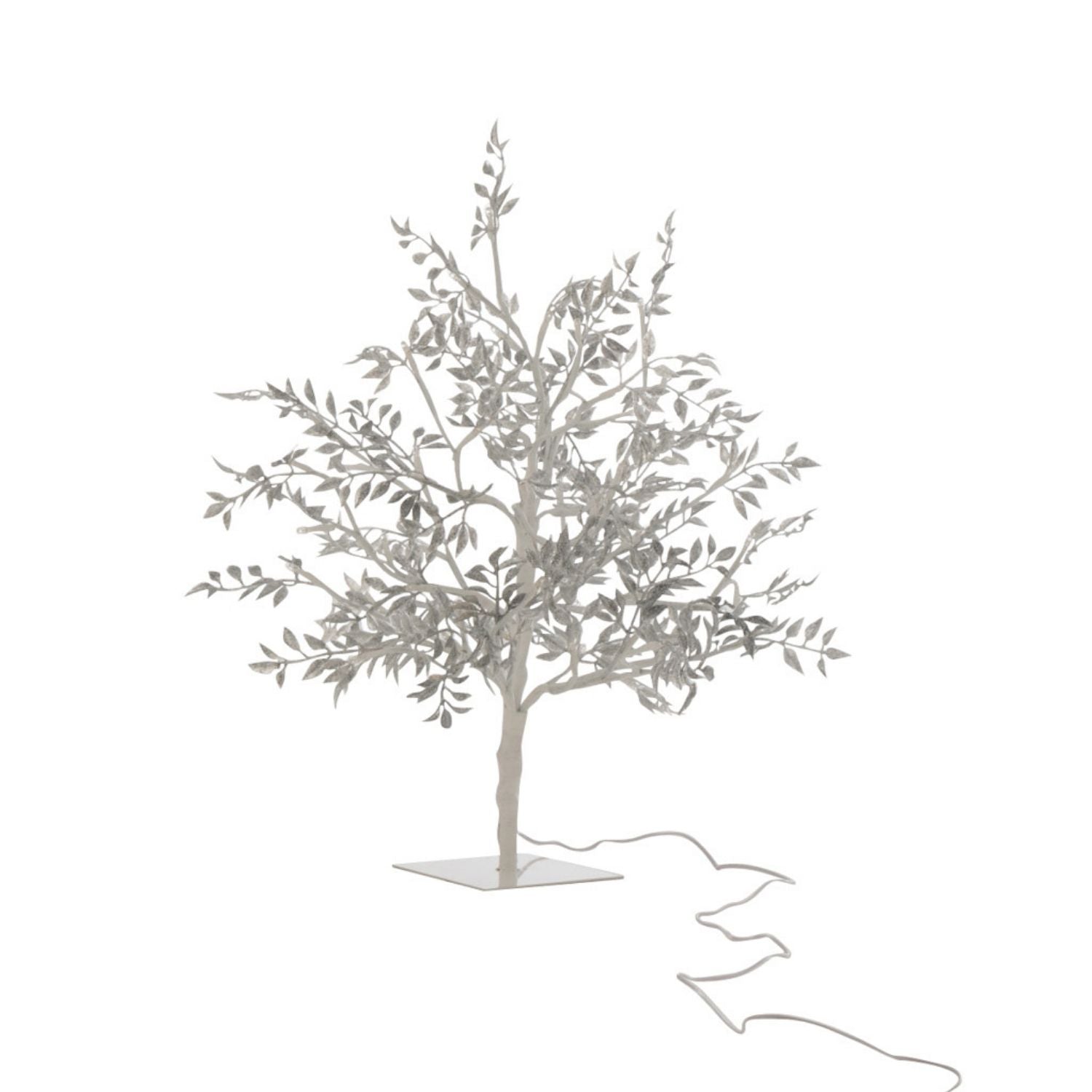 J-Line boom blaadjes - metaal - glitter|zilver - LED lichtjes - small
