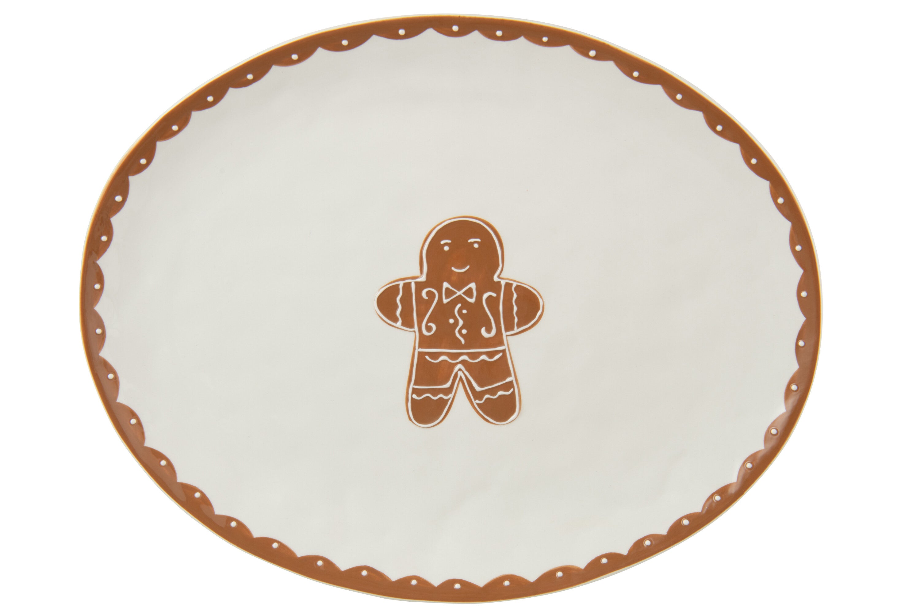J-Line bord Cookie Ovaal Dolomiet - keramiek - bruin|wit