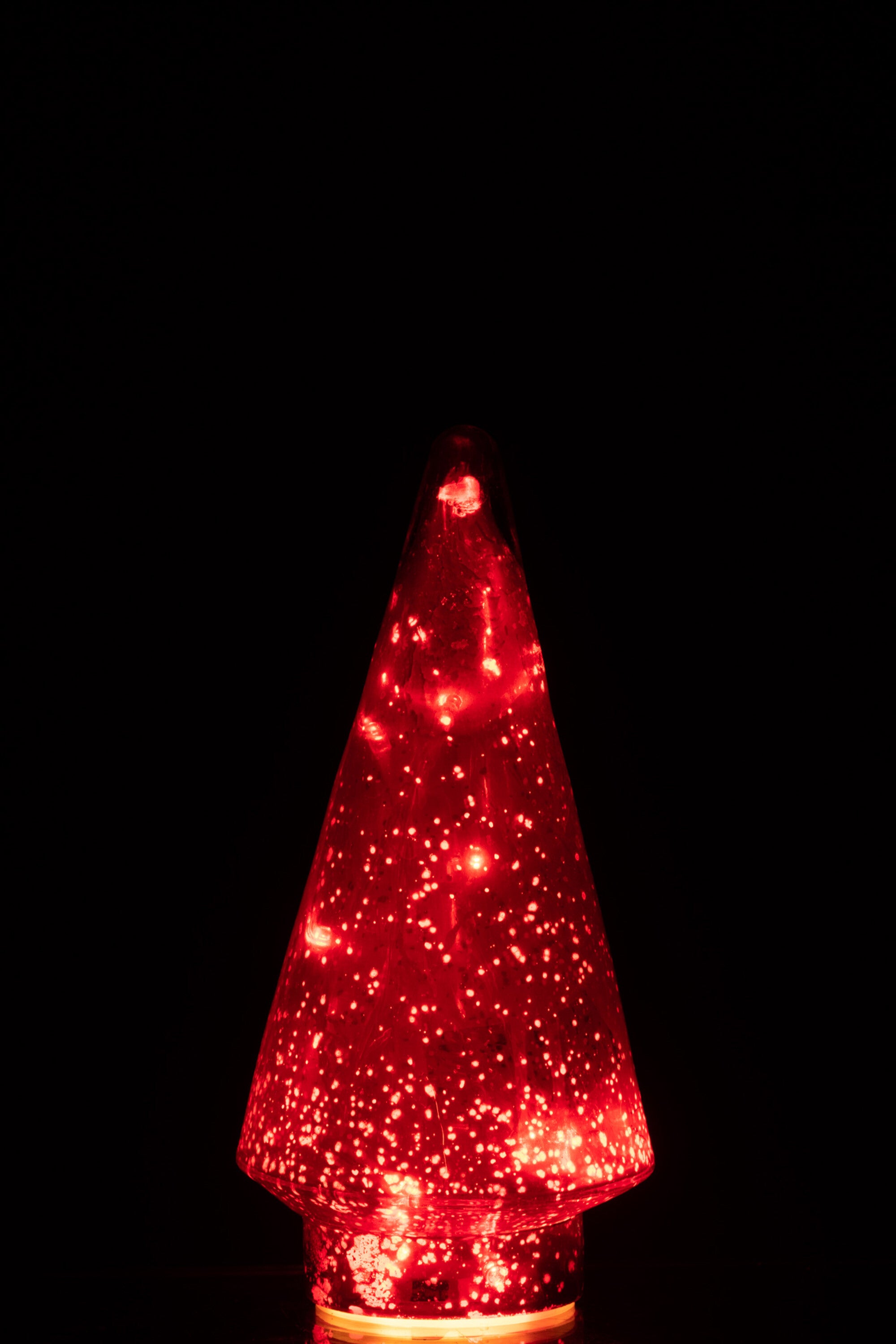 J-Line decoratie Kerstboom - glas - rood - medium - LED lichtjes