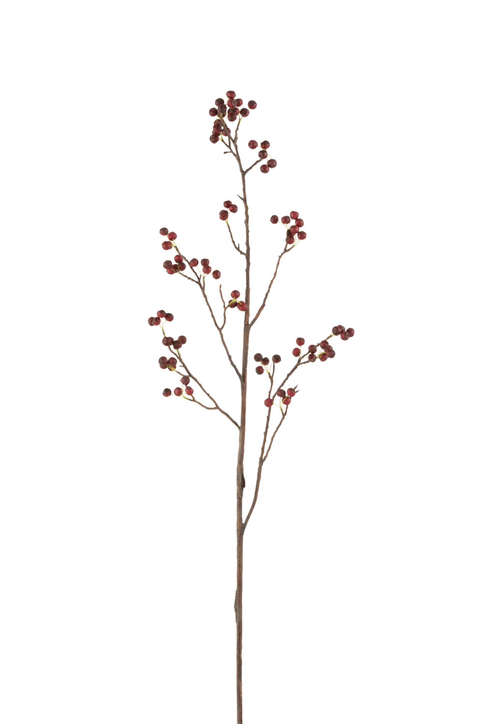 J-Line decoratie tak Bessen Fijn - kunststof - rood|groen -