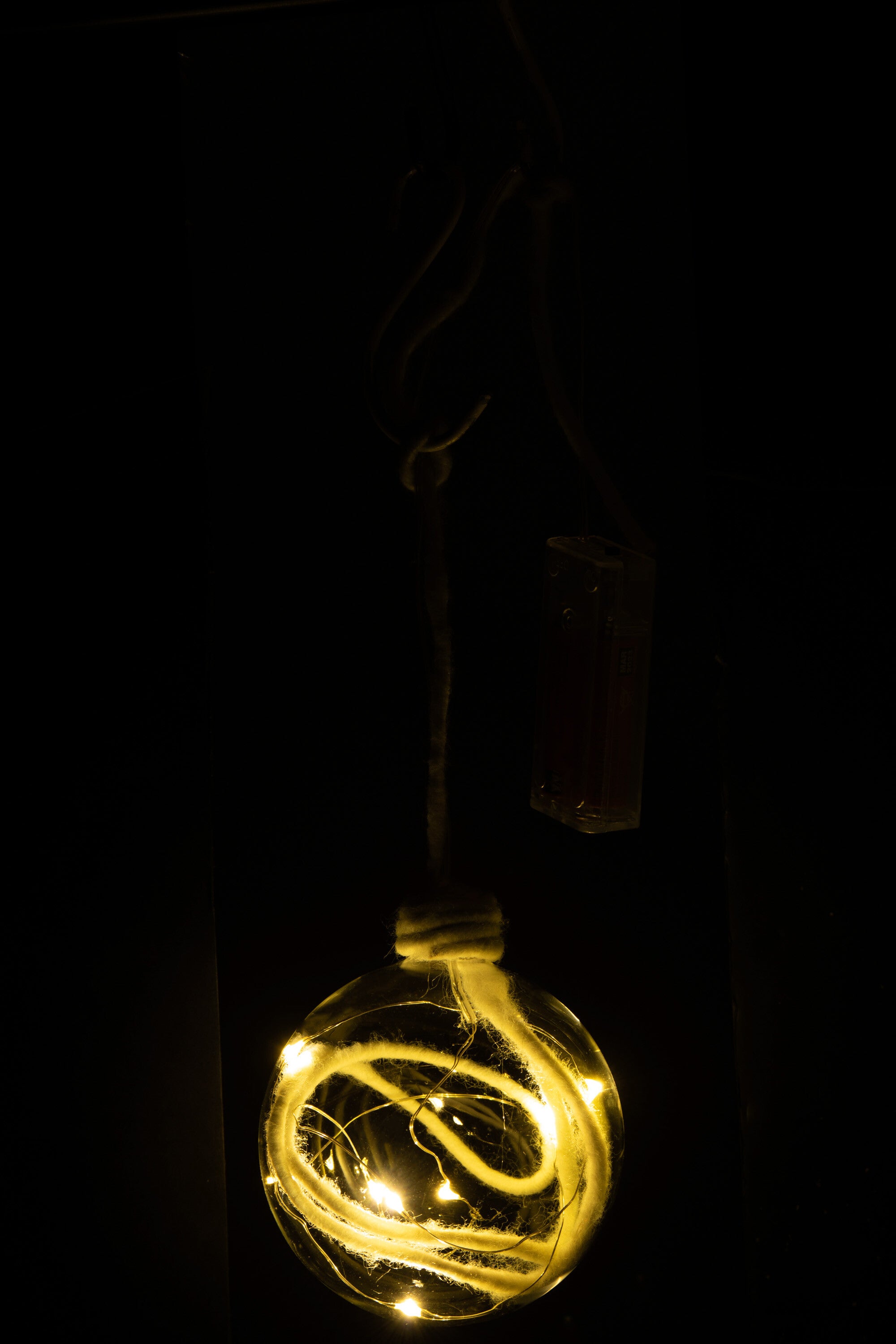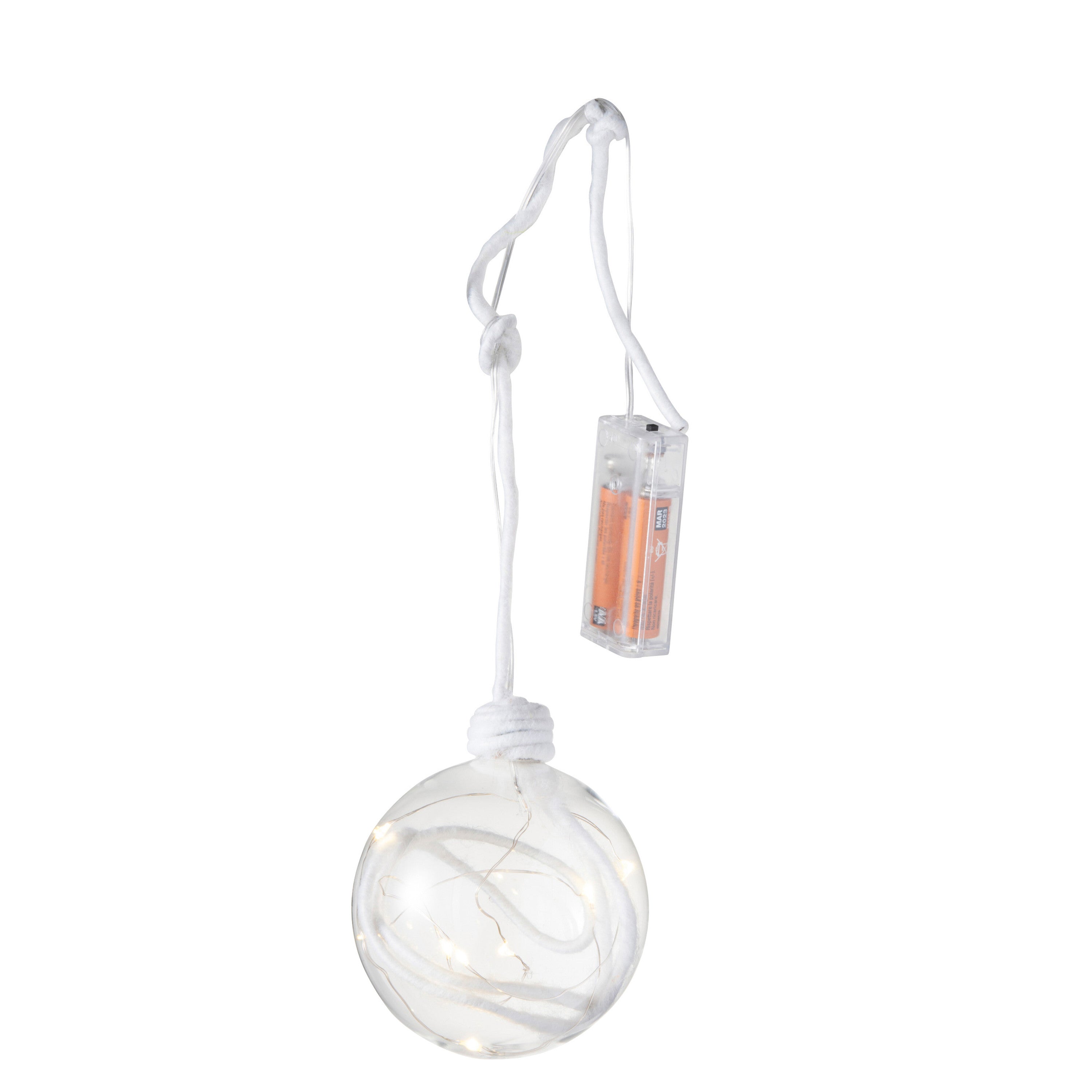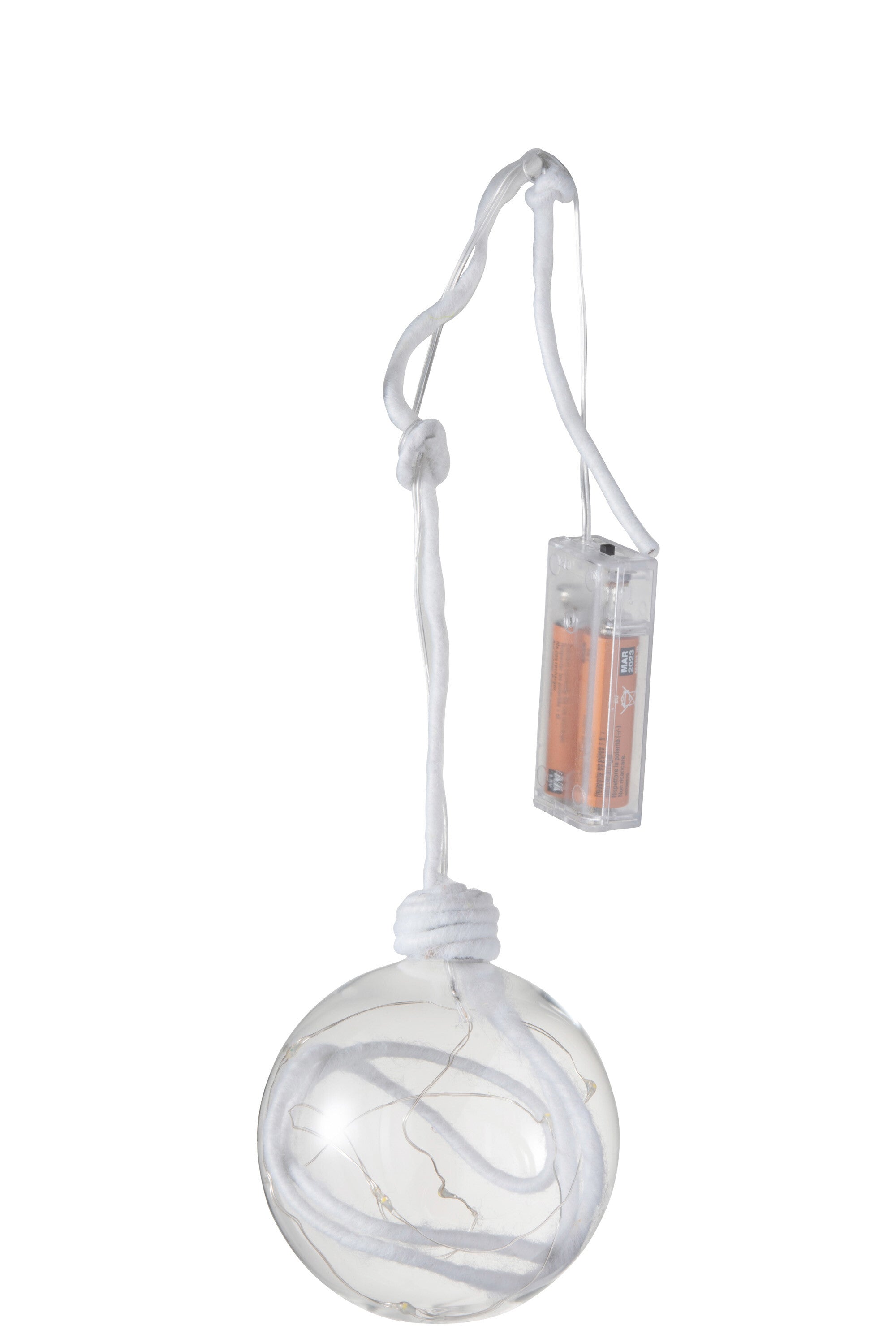 J-Line kerstbal - glas - klaar wit - medium - 6 stuks - LED lichtjes