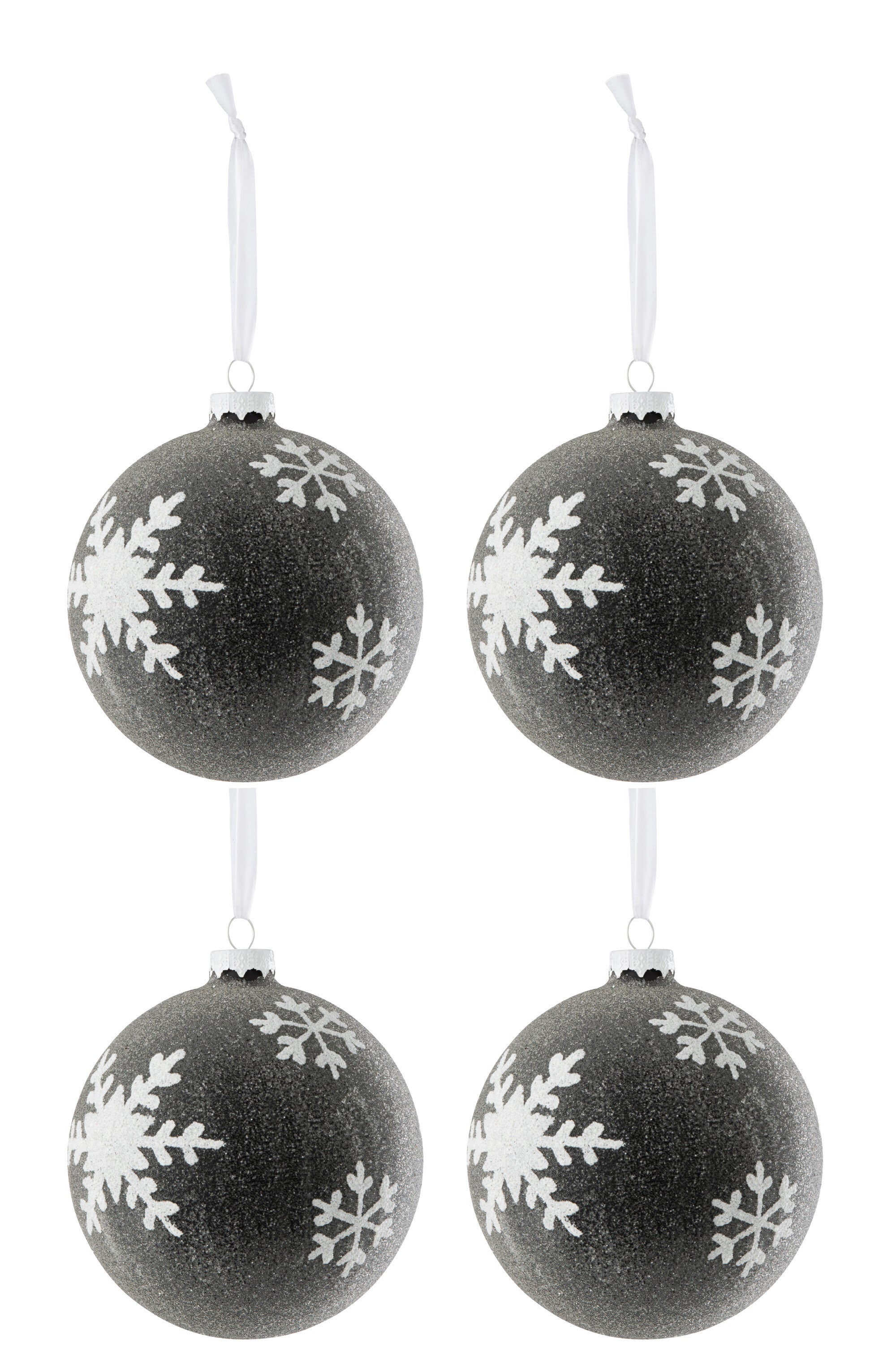 J-Line kerstbal Parels + Sneeuwvlok -glas - grijs|wit - larg