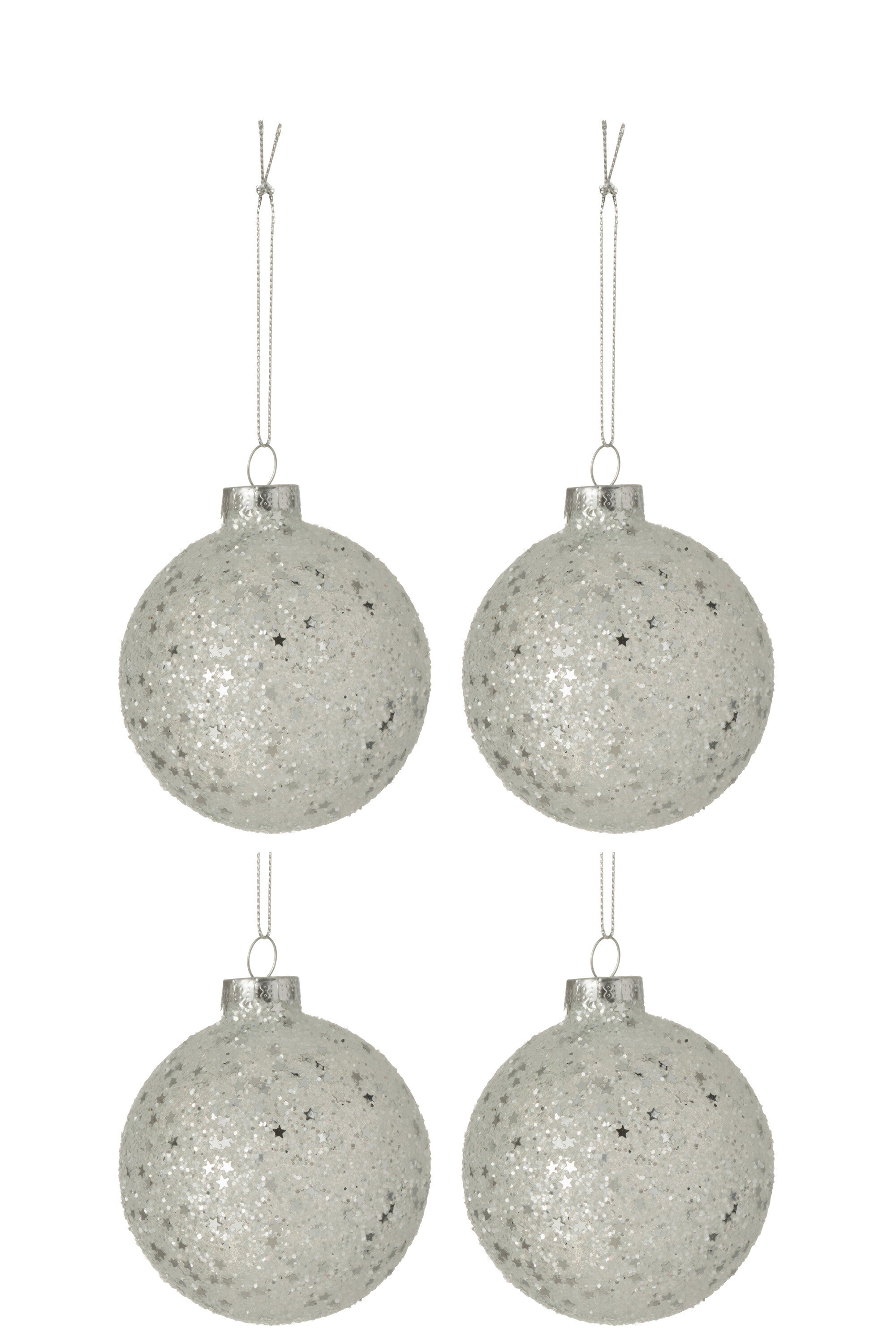 J-Line kerstbal Sterretjes - glas - zilver - medium - doos v