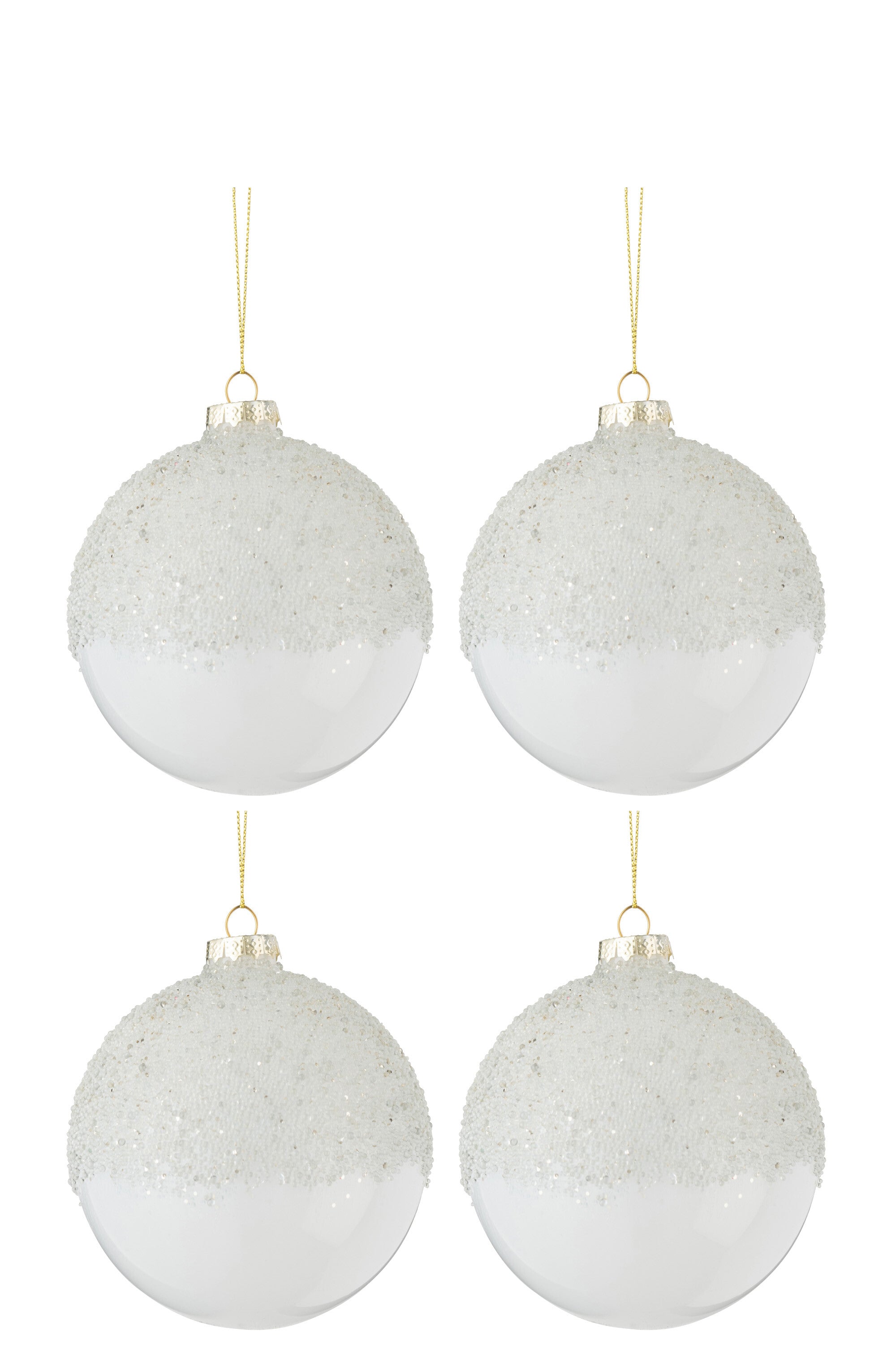 J-Line kerstbal Suiker Boven - glas - transparant|wit - medium - doos van 4