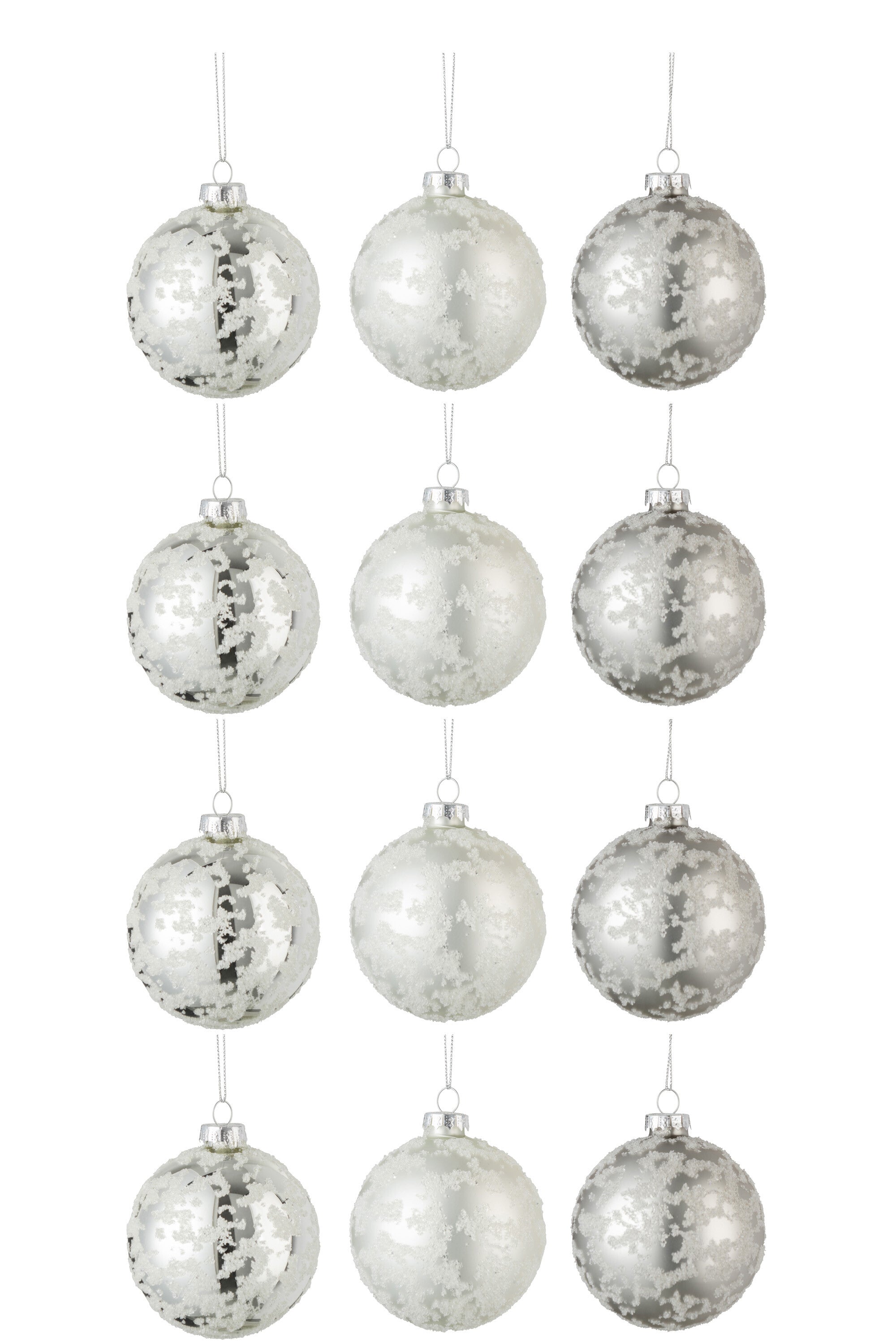 J-Line kerstbal Suiker - glas - grijs|wit|zilver - small - doos van 12