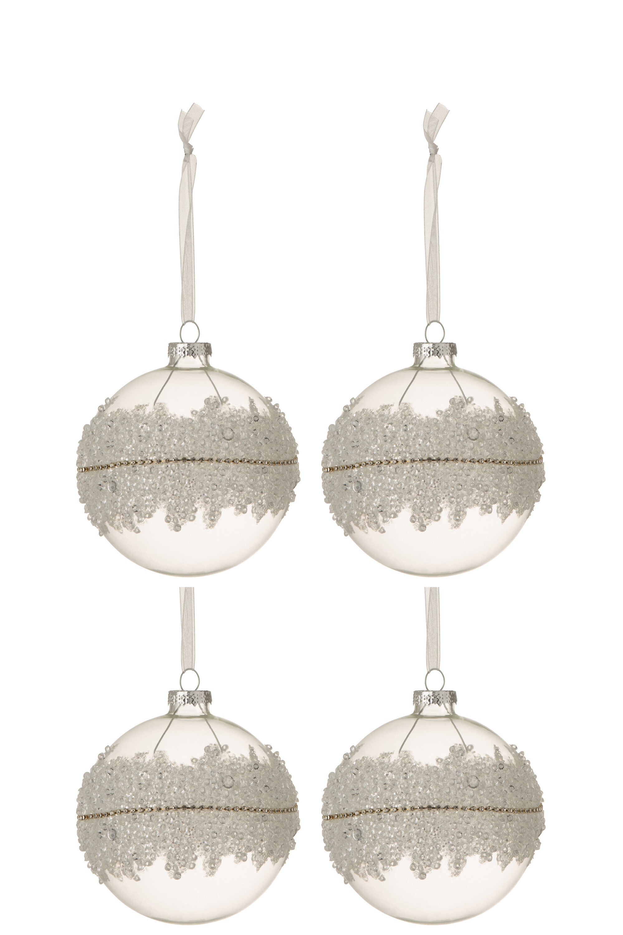 J-Line kerstbal Suiker Midden Diamanten Lijn - glas Klaar - medium - doos van 4