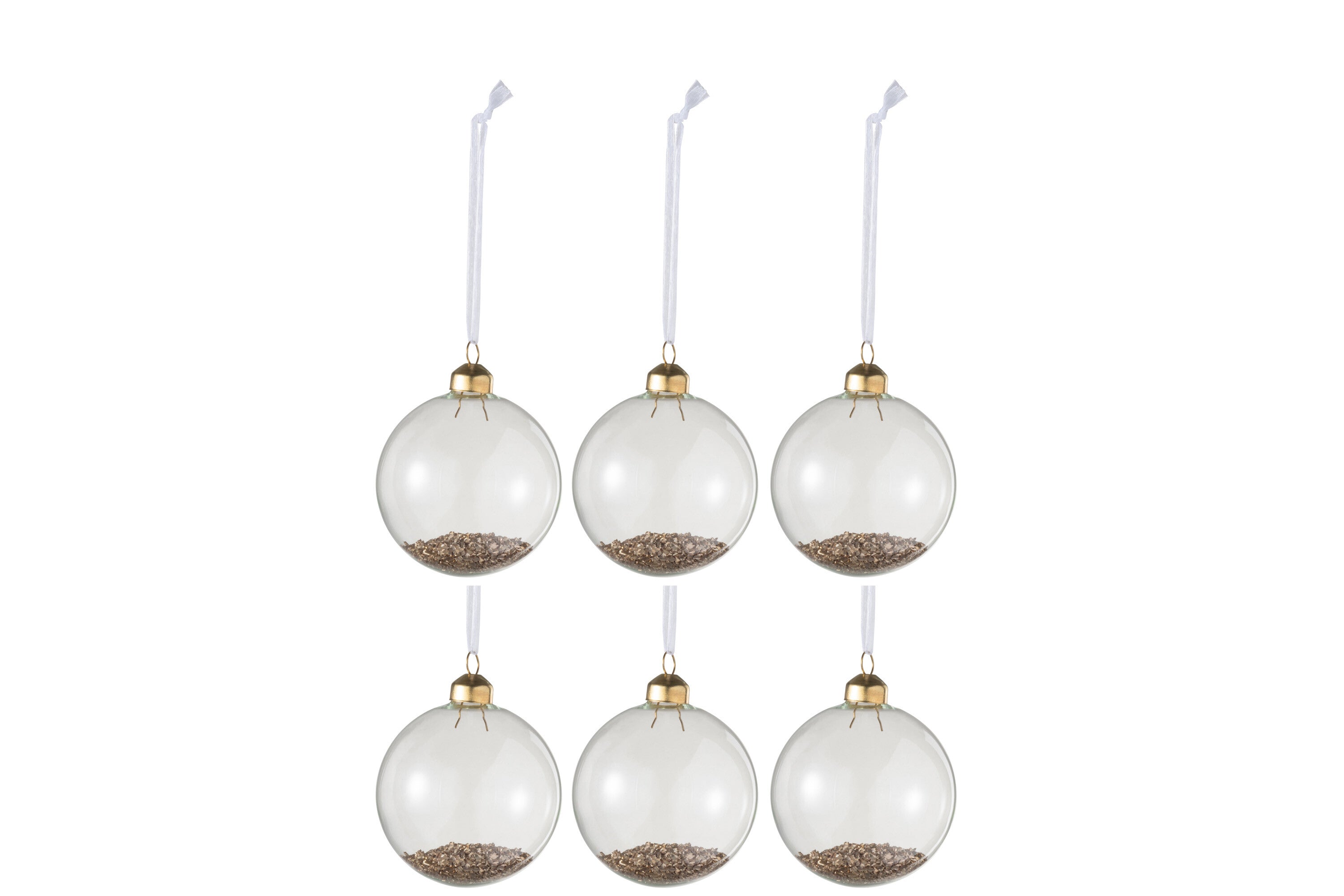 J-Line kerstbal Suiker Onderaan - glas - transparant|goud - small - doos van 6