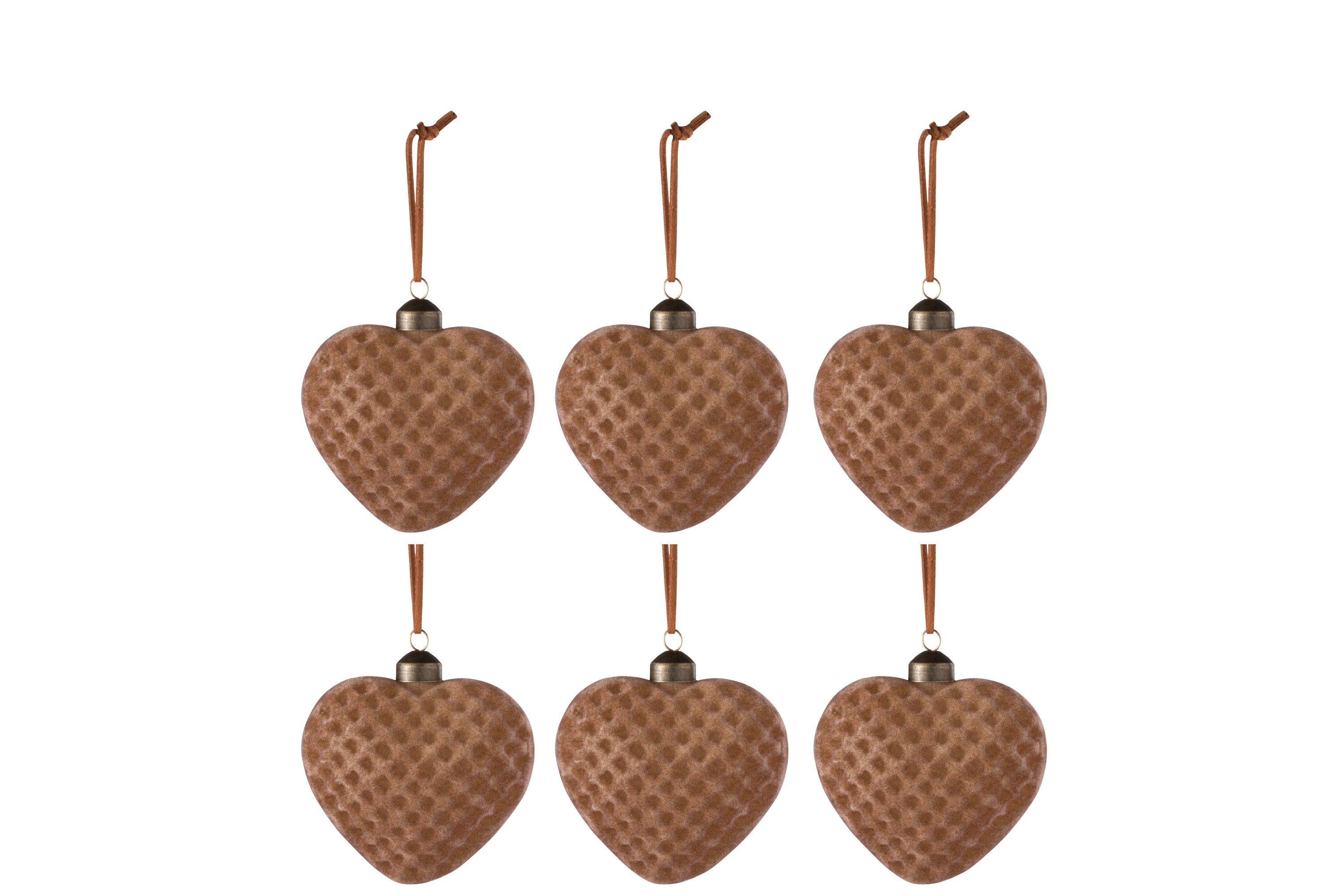 J-Line Kerstballen Hart Fluweel Bruin Set van 6