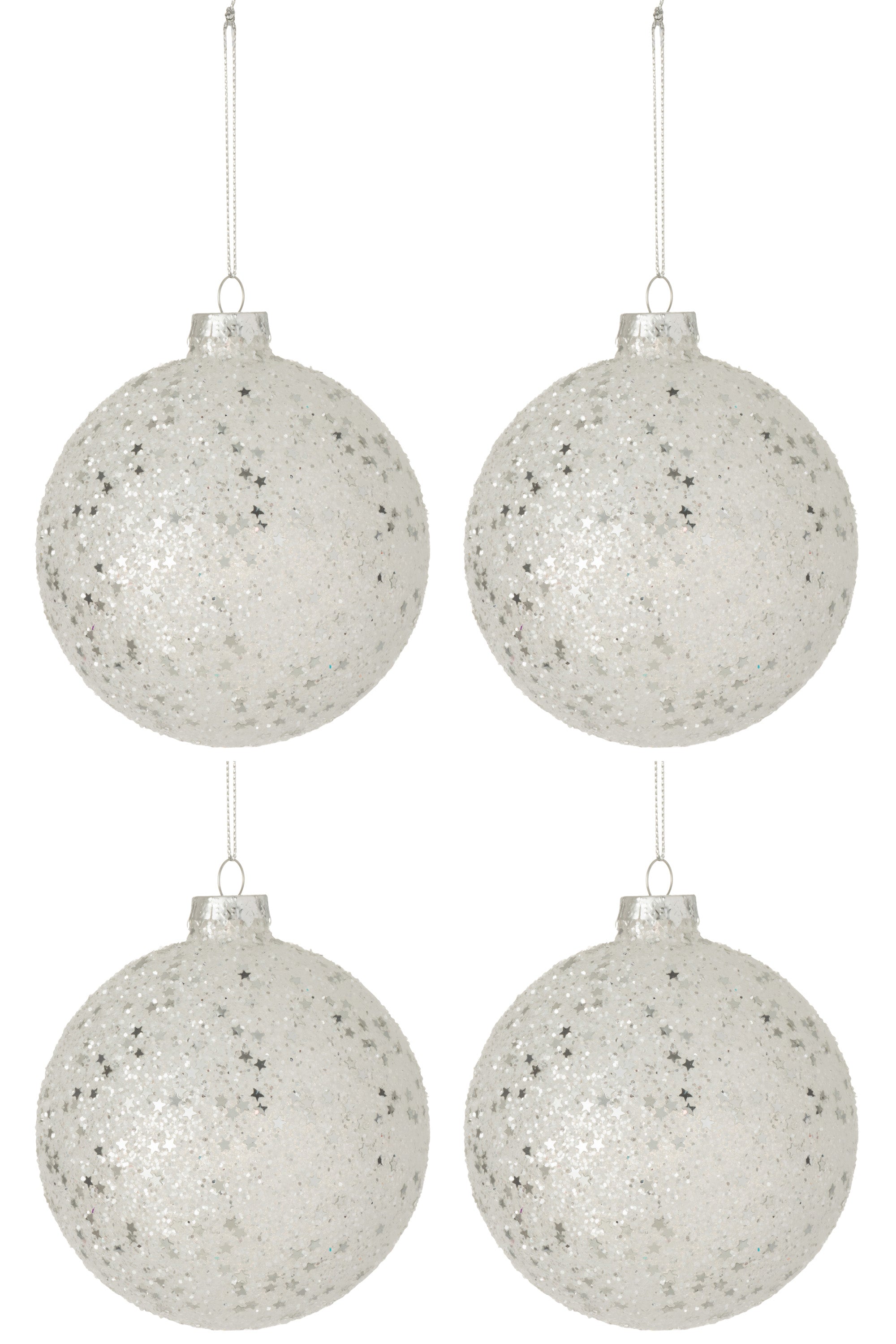 J-Line Kerstballen Sterretjes Zilver Set van 4