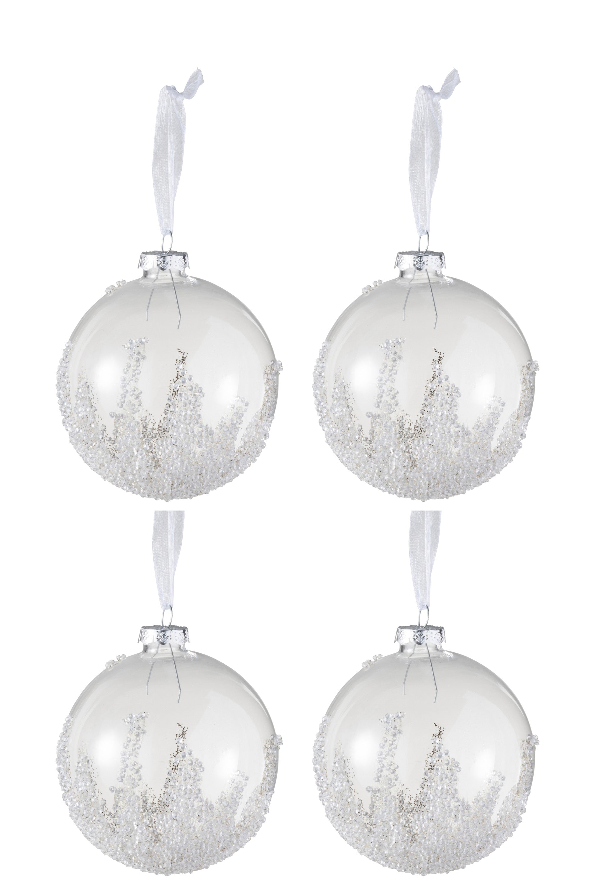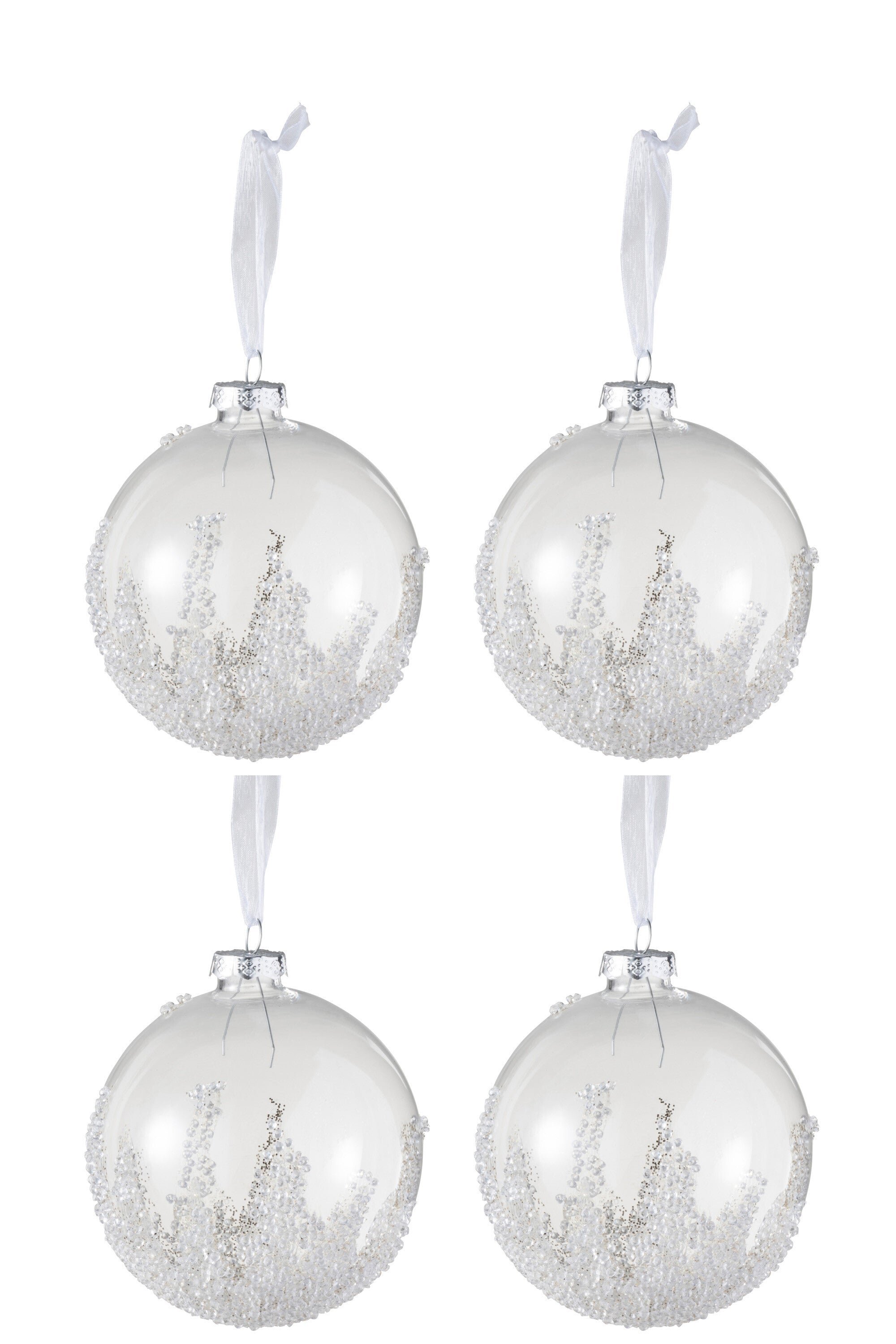 J-Line Kerstballen Suiker Transparant Wit Set van 4