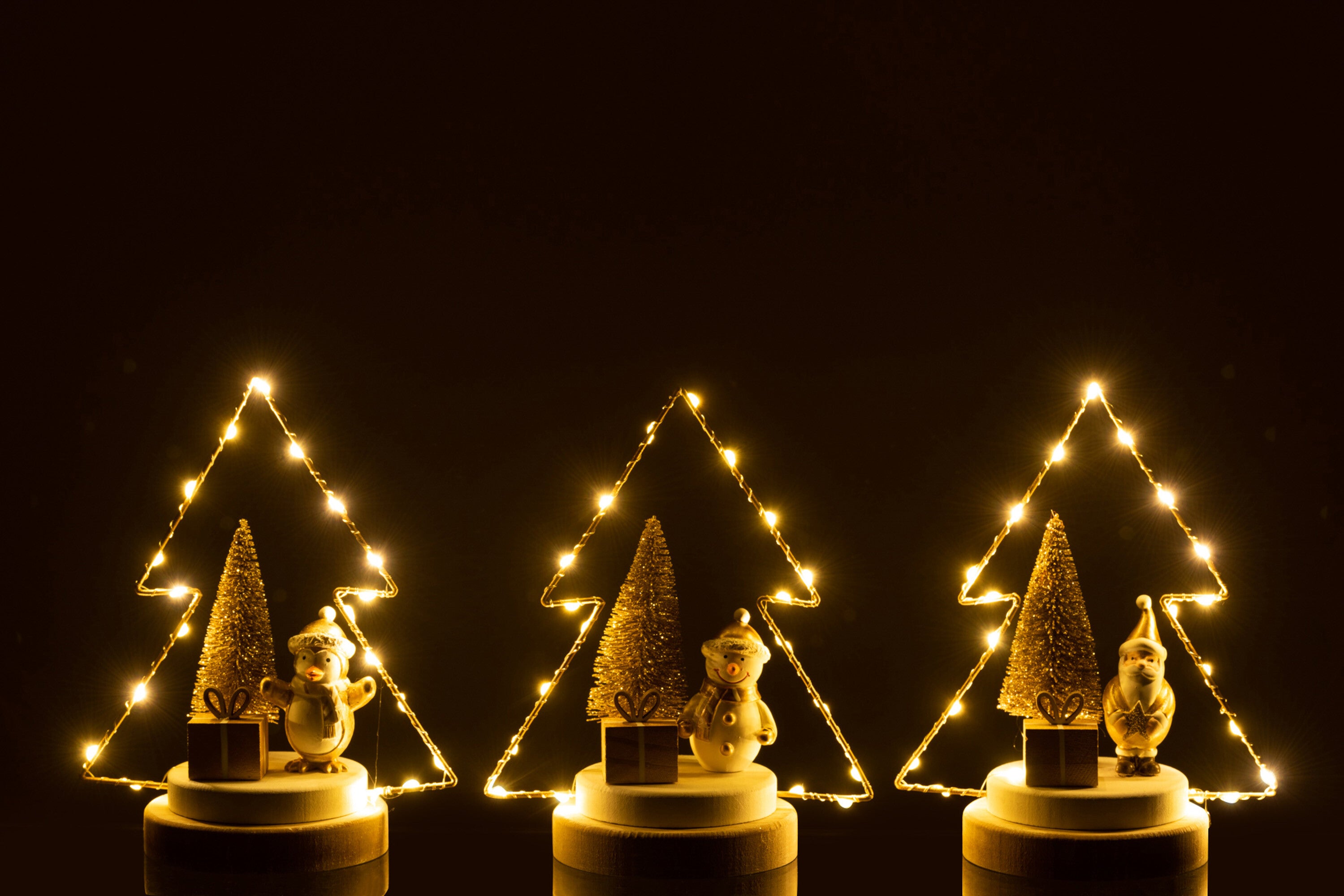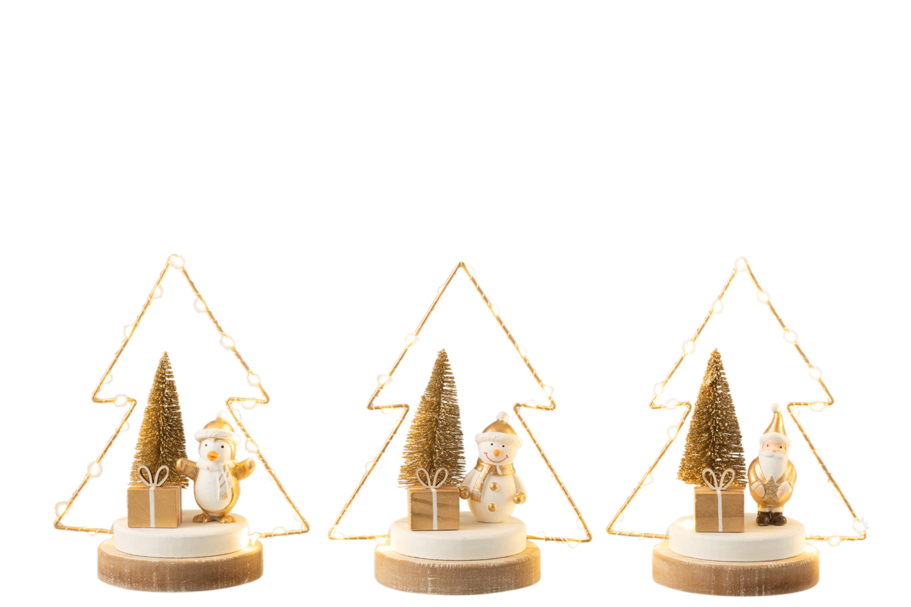 J-Line Kerstboom - hout - wit|goud|naturel - LED lichtjes - 3 stukjes