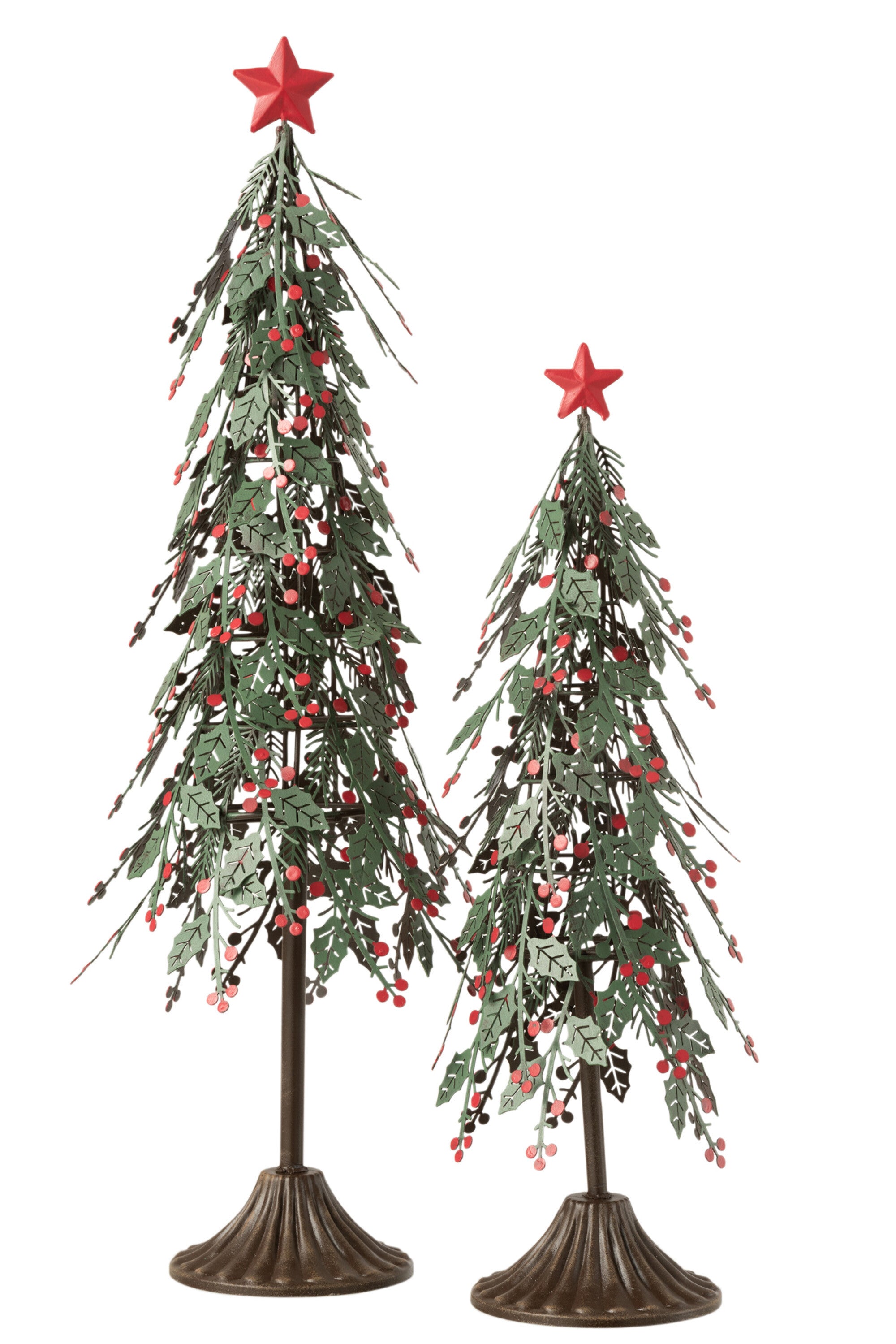 J-Line kerstboom op voet met blaadjes - metaal - groen|rood - large