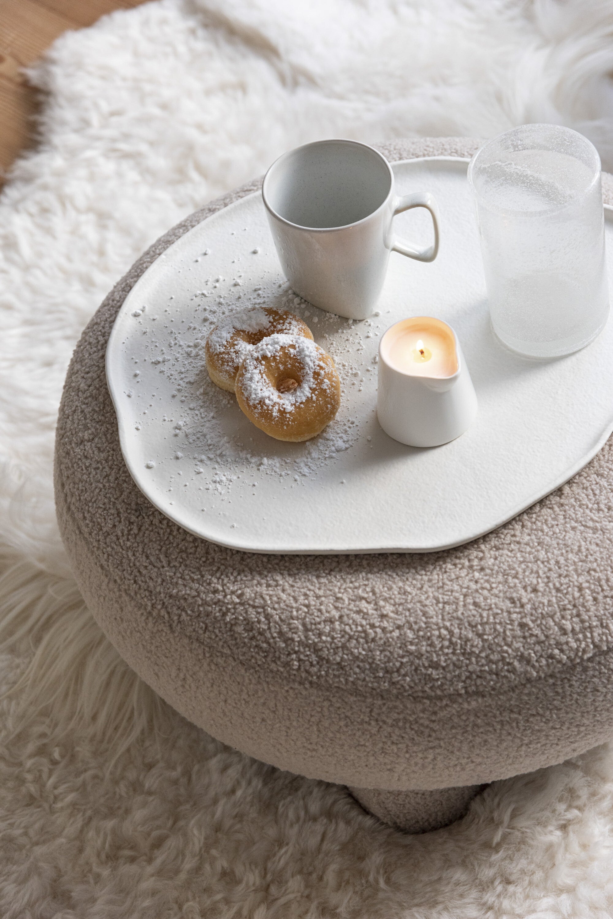 - Met een zachte teddy stof in een frisse witte bouclé, is deze kruk een ware eyecatcher. Het materiaal voelt superzacht aan, ideaal om in weg te duiken.
