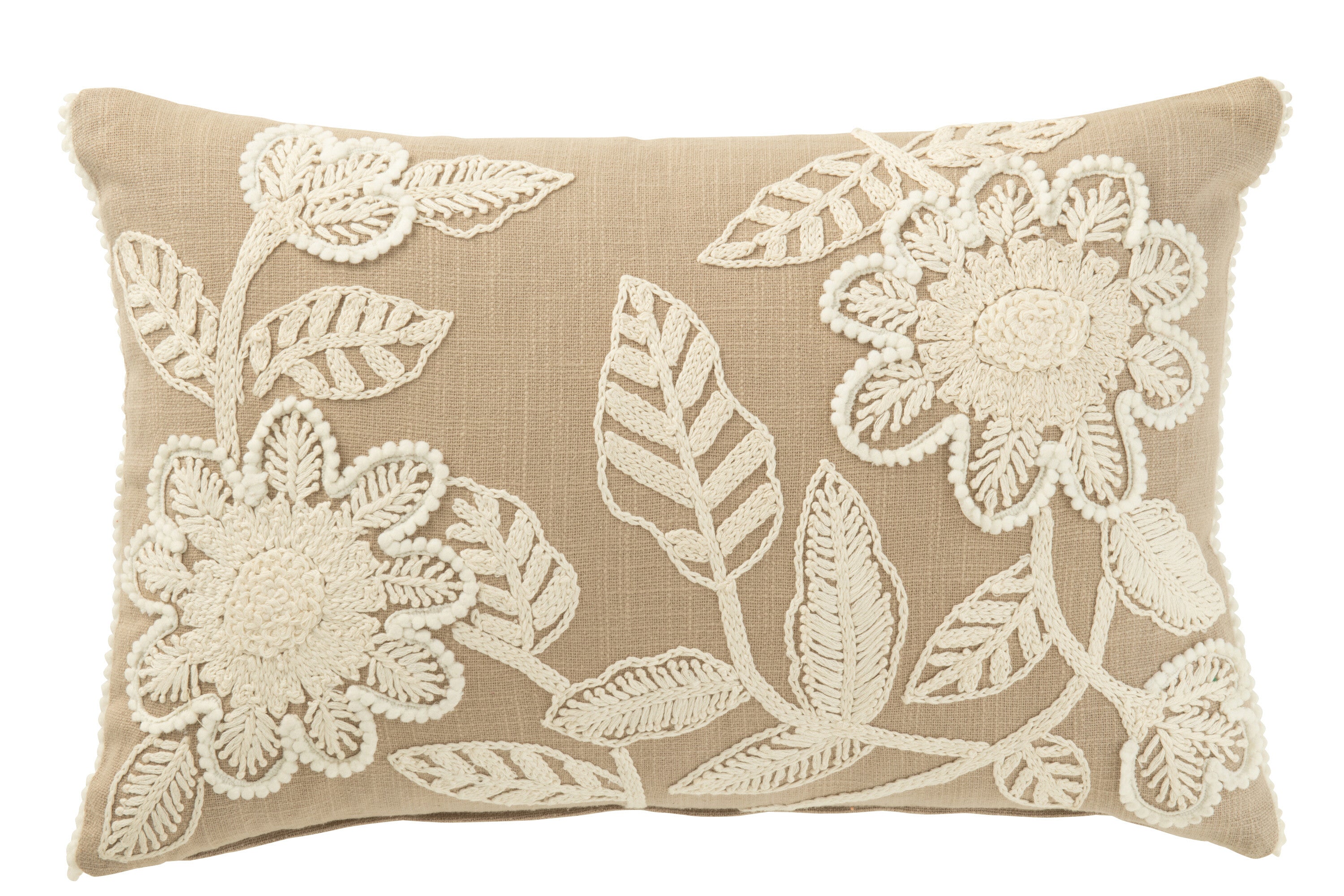 KUSSEN BLOEMEN BORDUURWERK KATOEN GREIGE/CREME is gemaakt en ontworpen door het Belgische bedrijf J-Line.