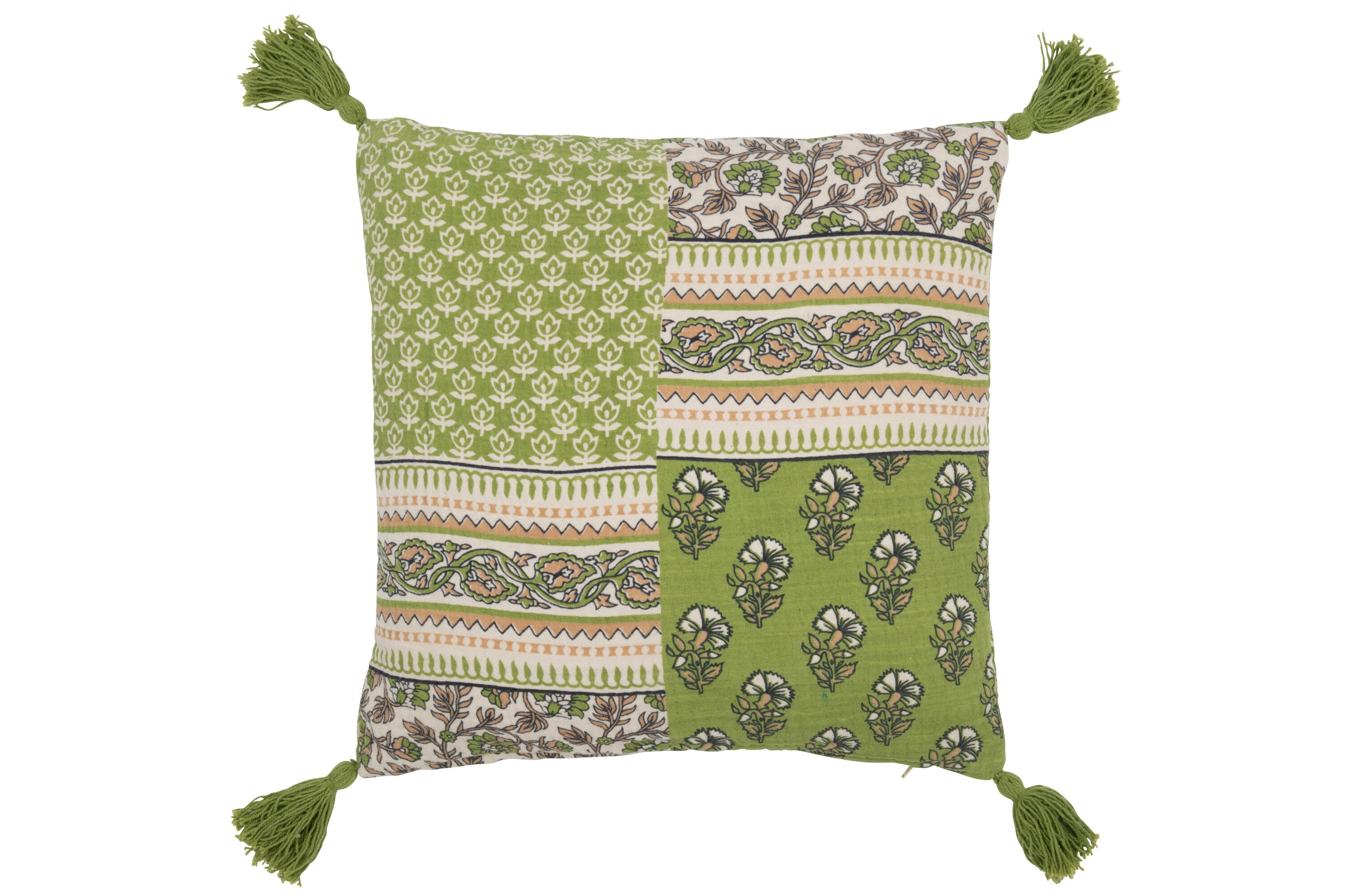 J-Line kussen Bloemen + Kwastjes - katoen - groen