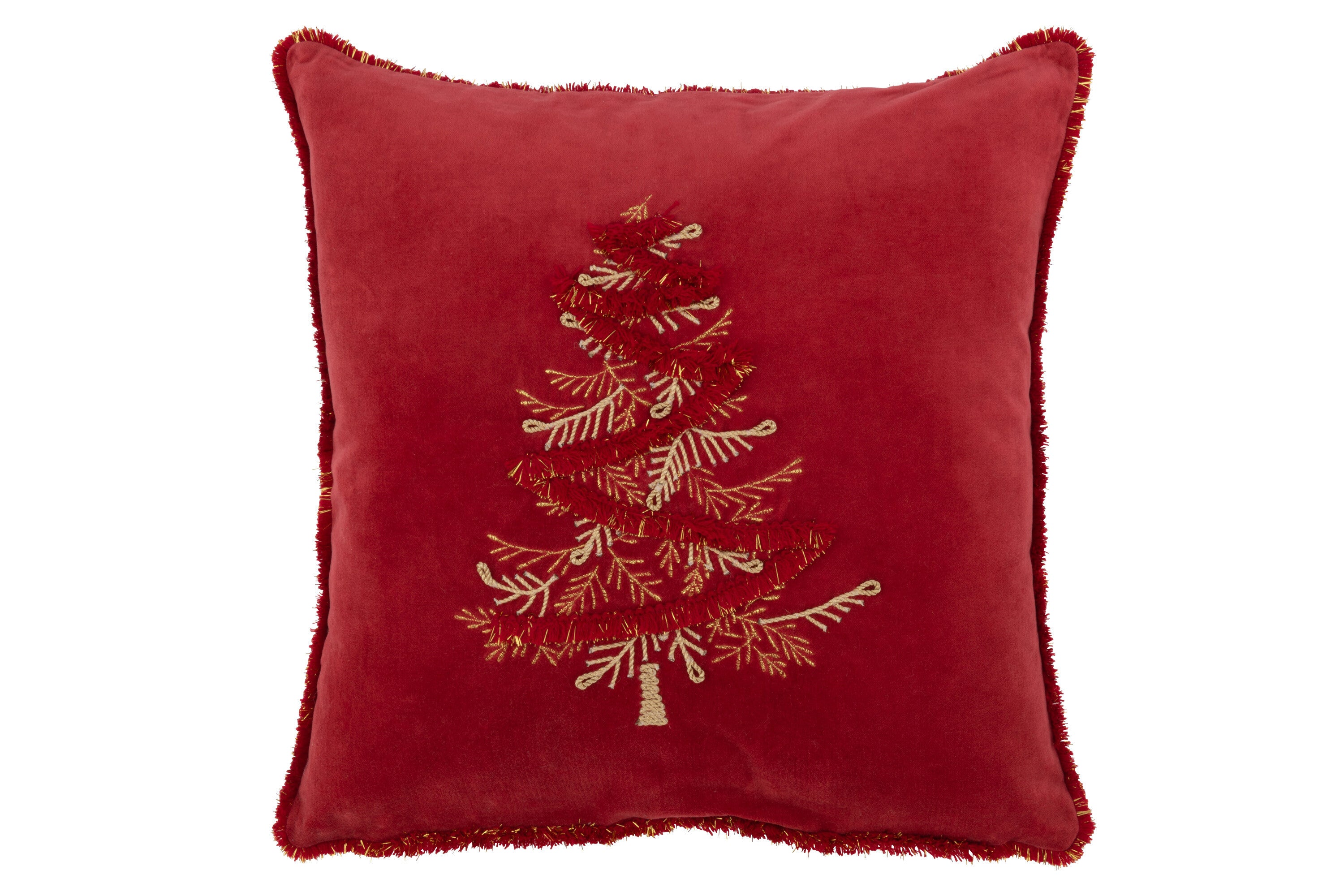 J-line - Kussen Boom Textiel Rood|goud - 45x45x12cm