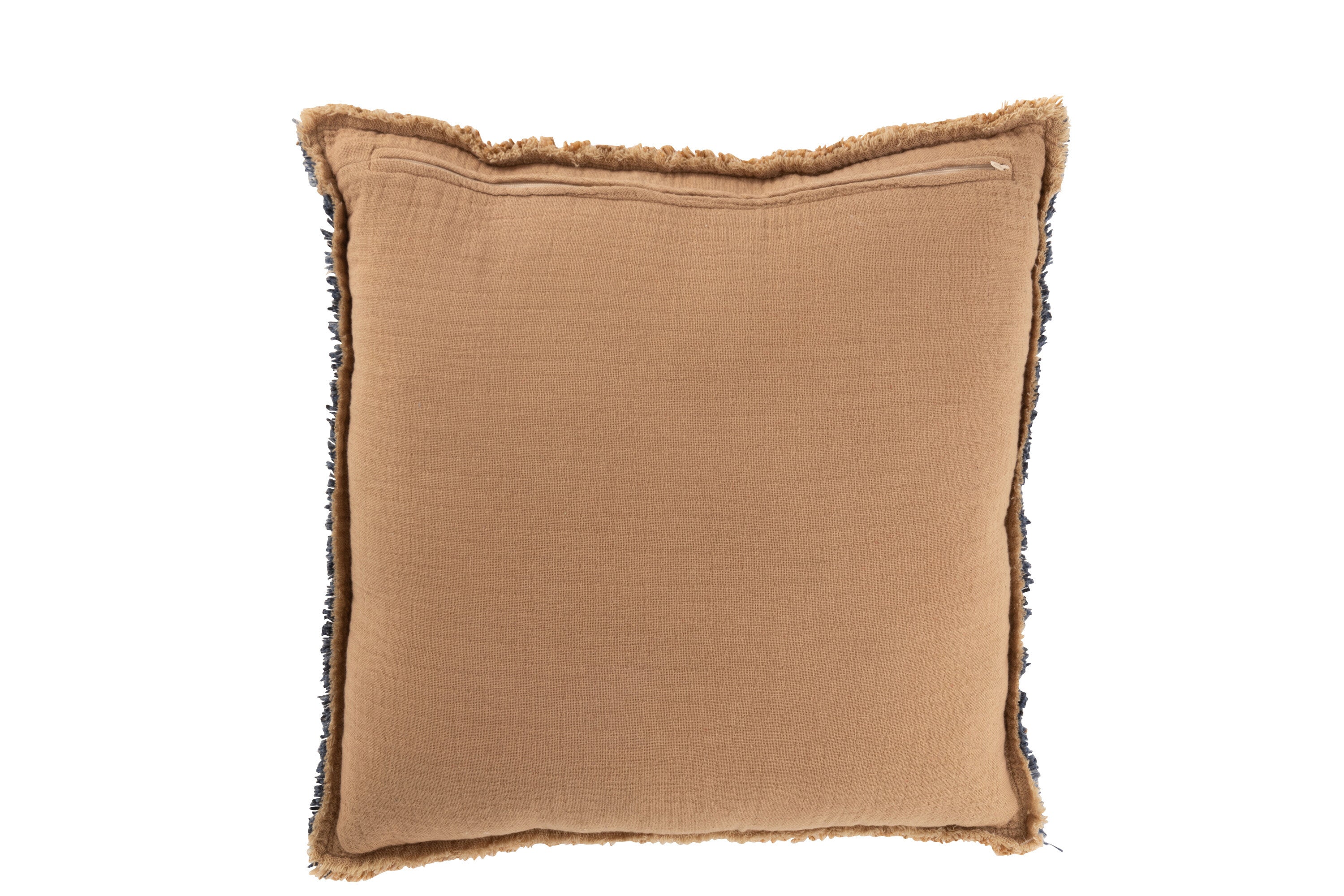 J-Line kussen Gerafelde Randen - polyester|katoen - lichtbruin|blauw