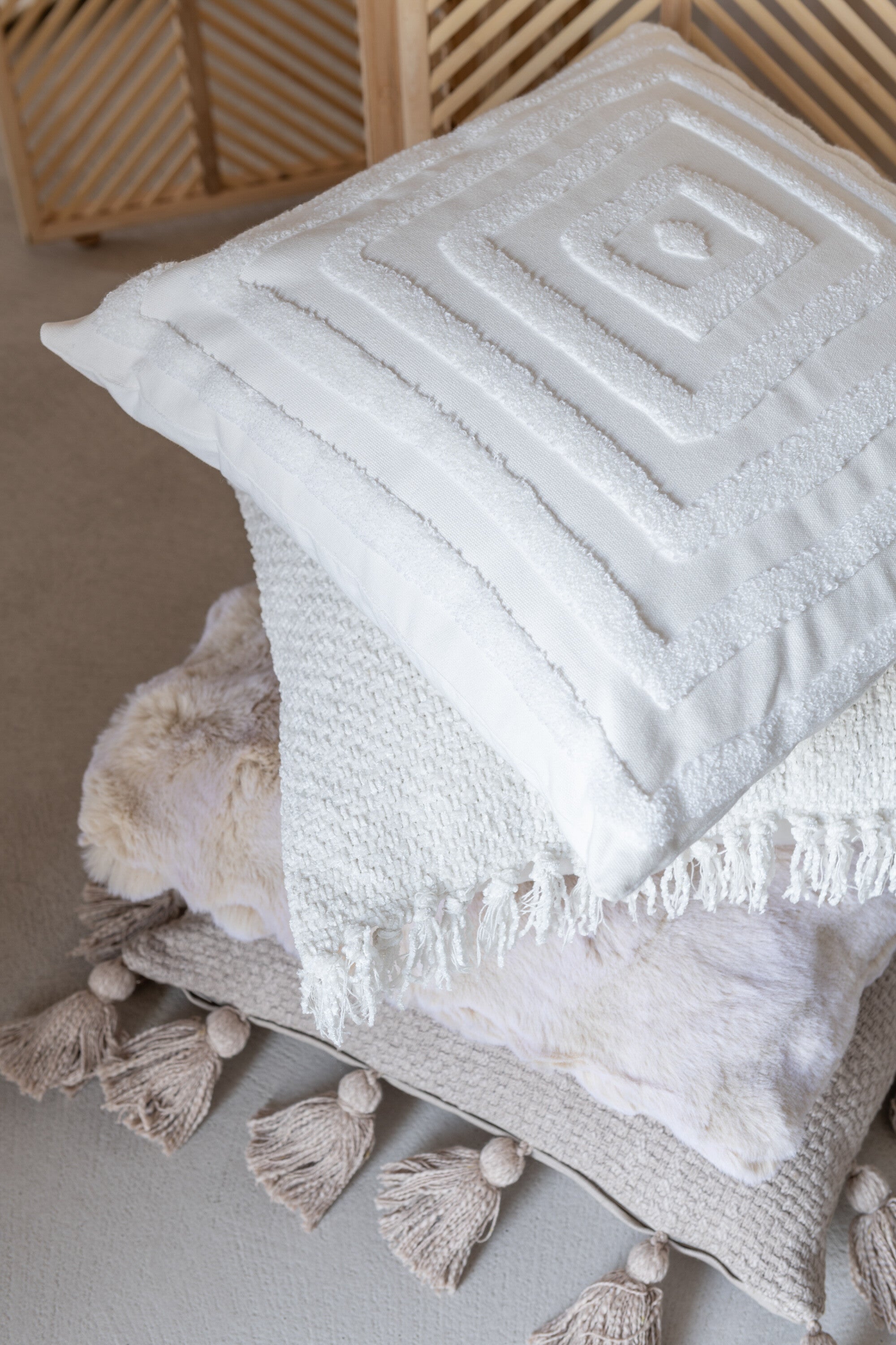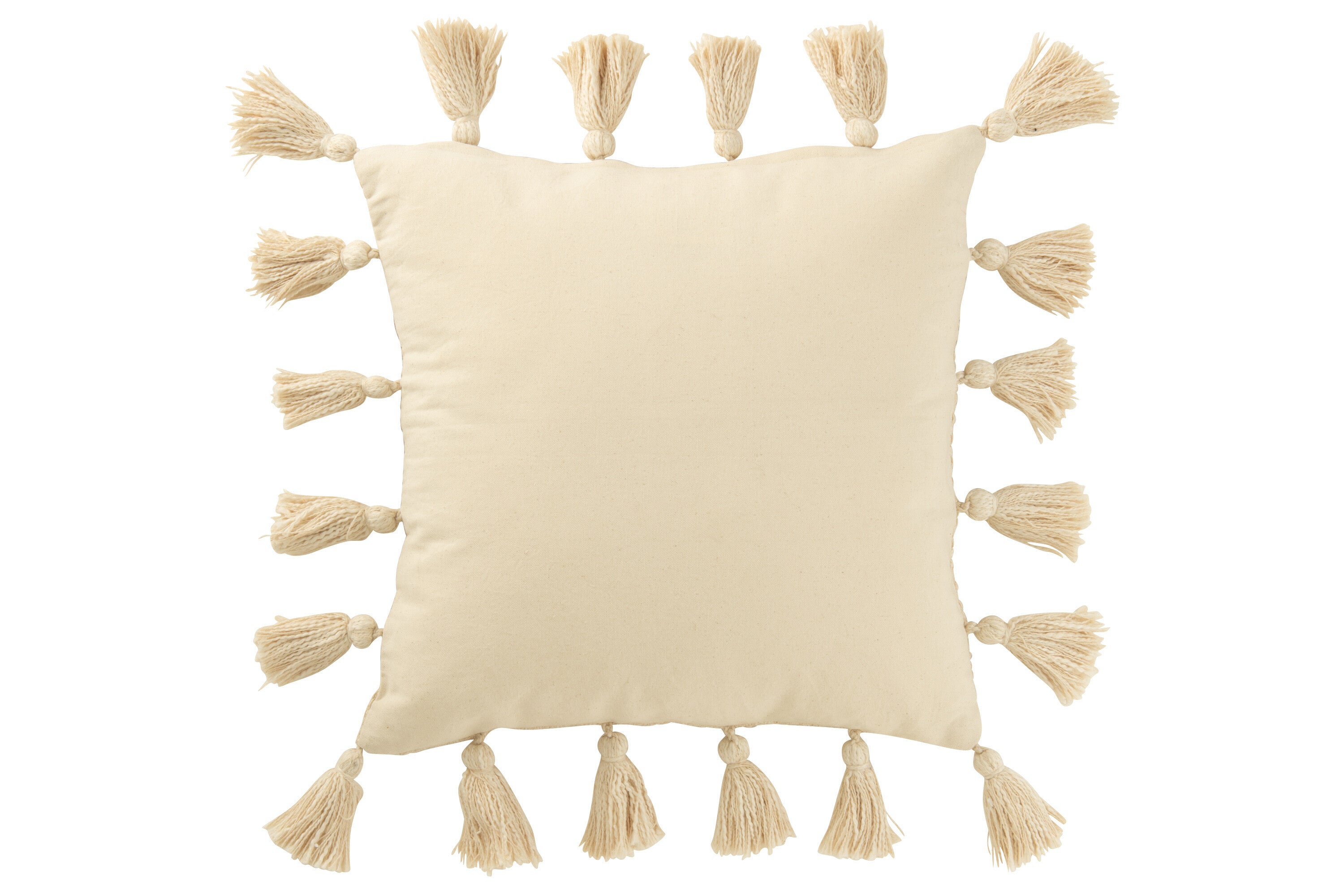 J-Line kussen Gewoven Kwasten - katoen - beige