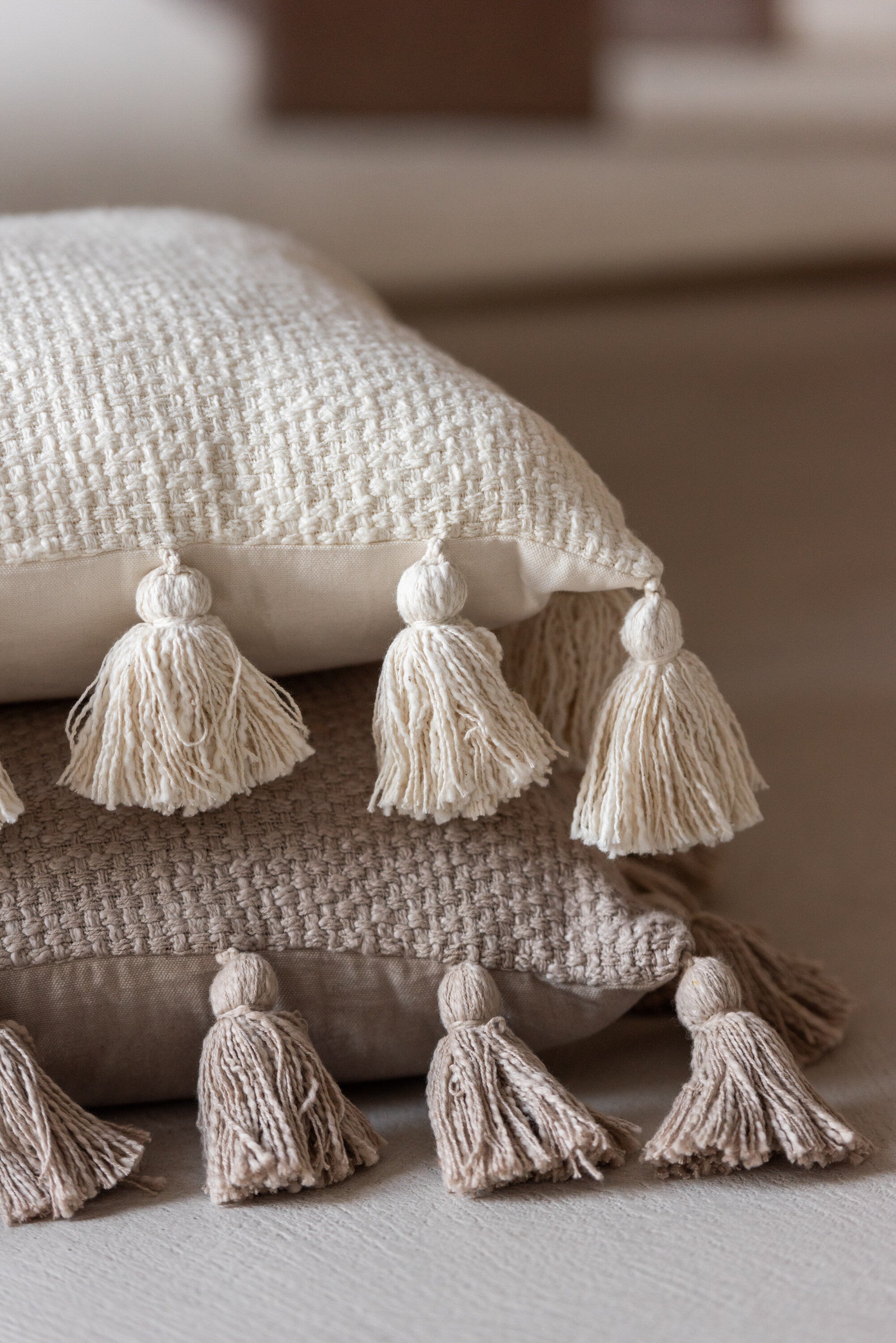 J-Line kussen Gewoven Kwasten - katoen - taupe