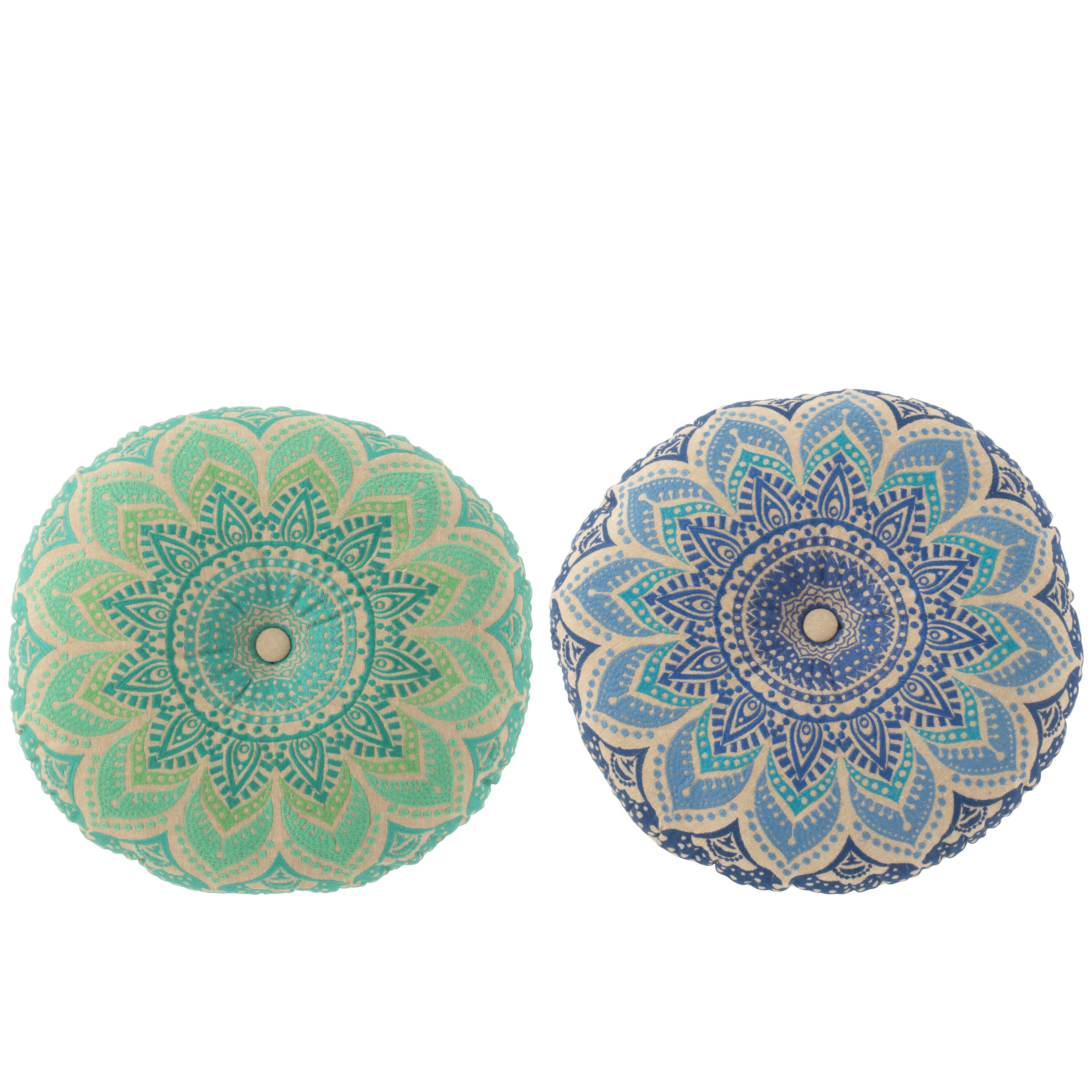 J-Line kussen Rond Bloem - katoen - turquoise|blauw - 2 stuks