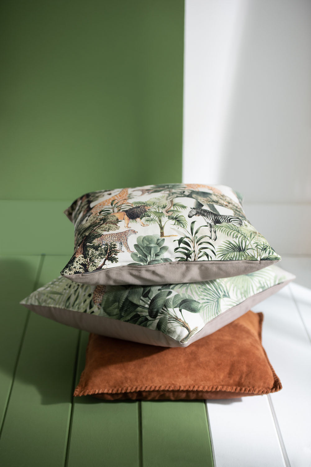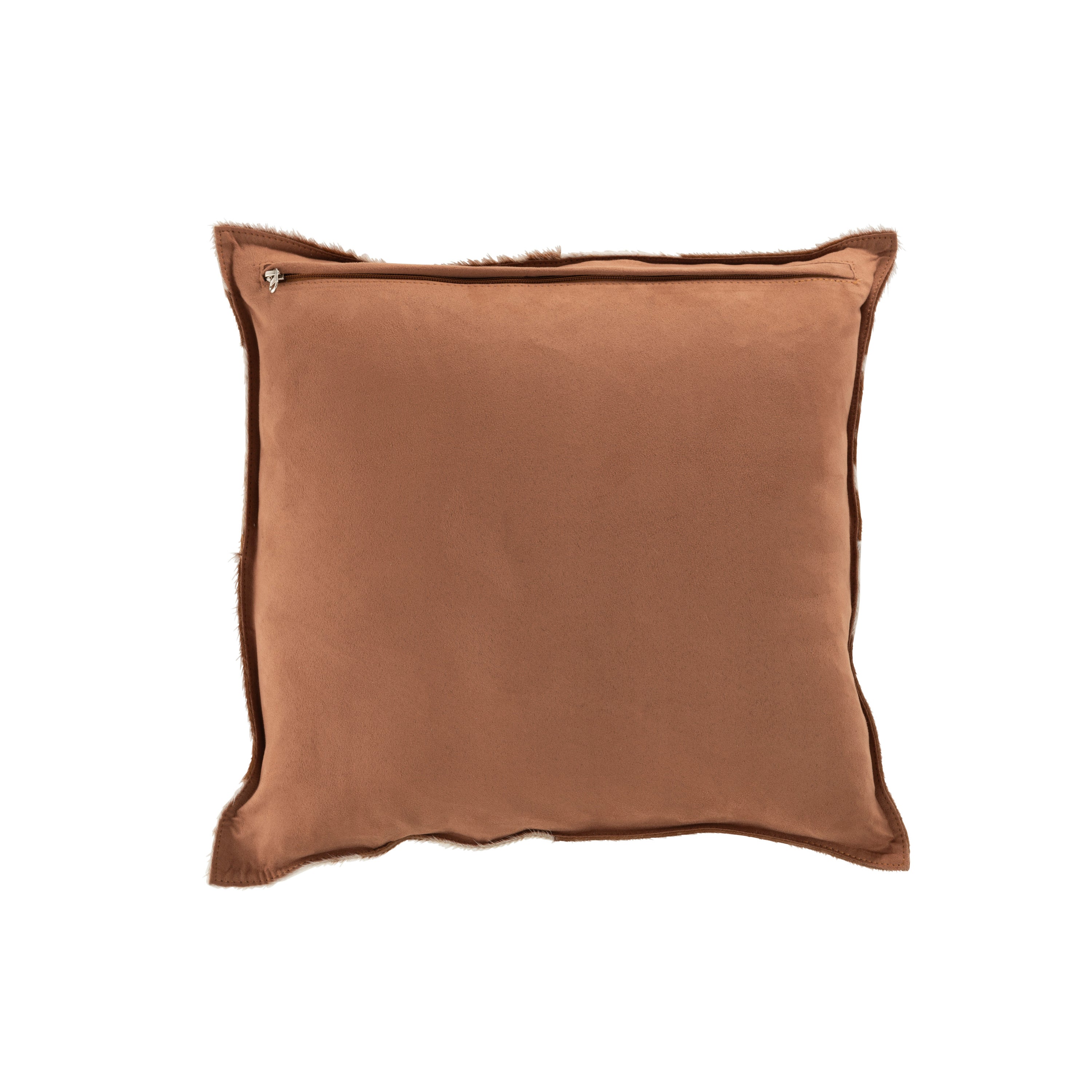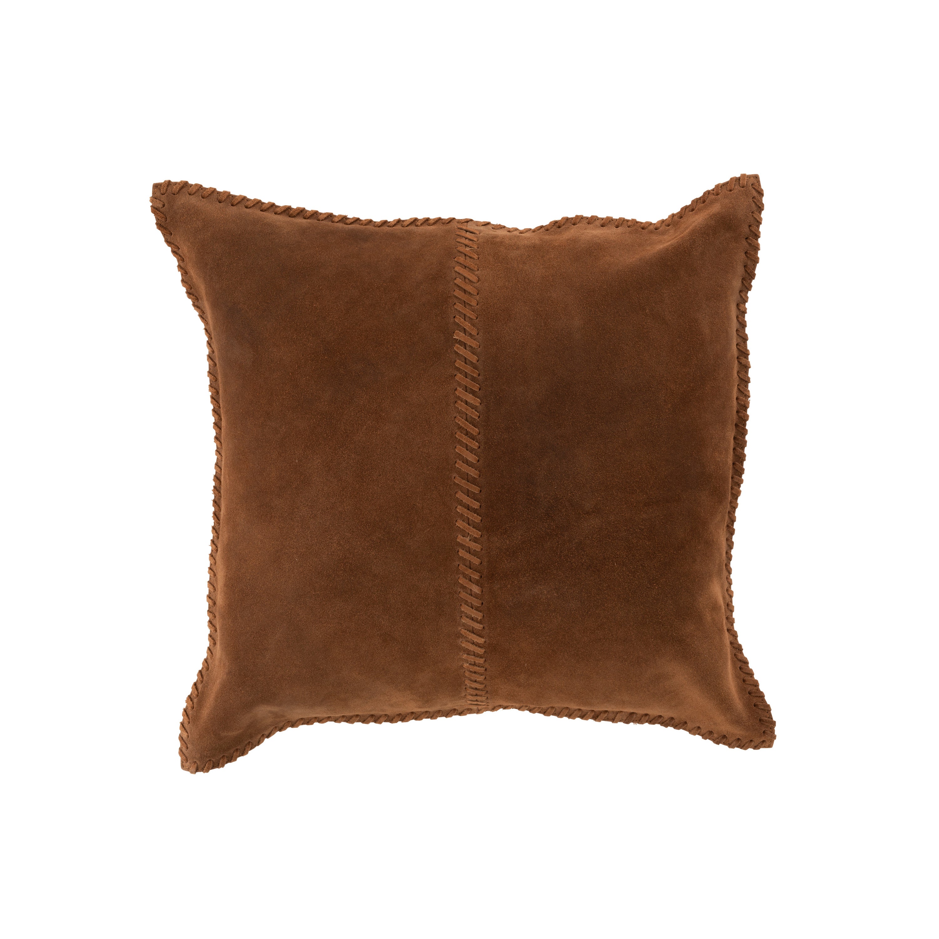 J-Line Kussen Vierkant Stiksels Leer Cognac