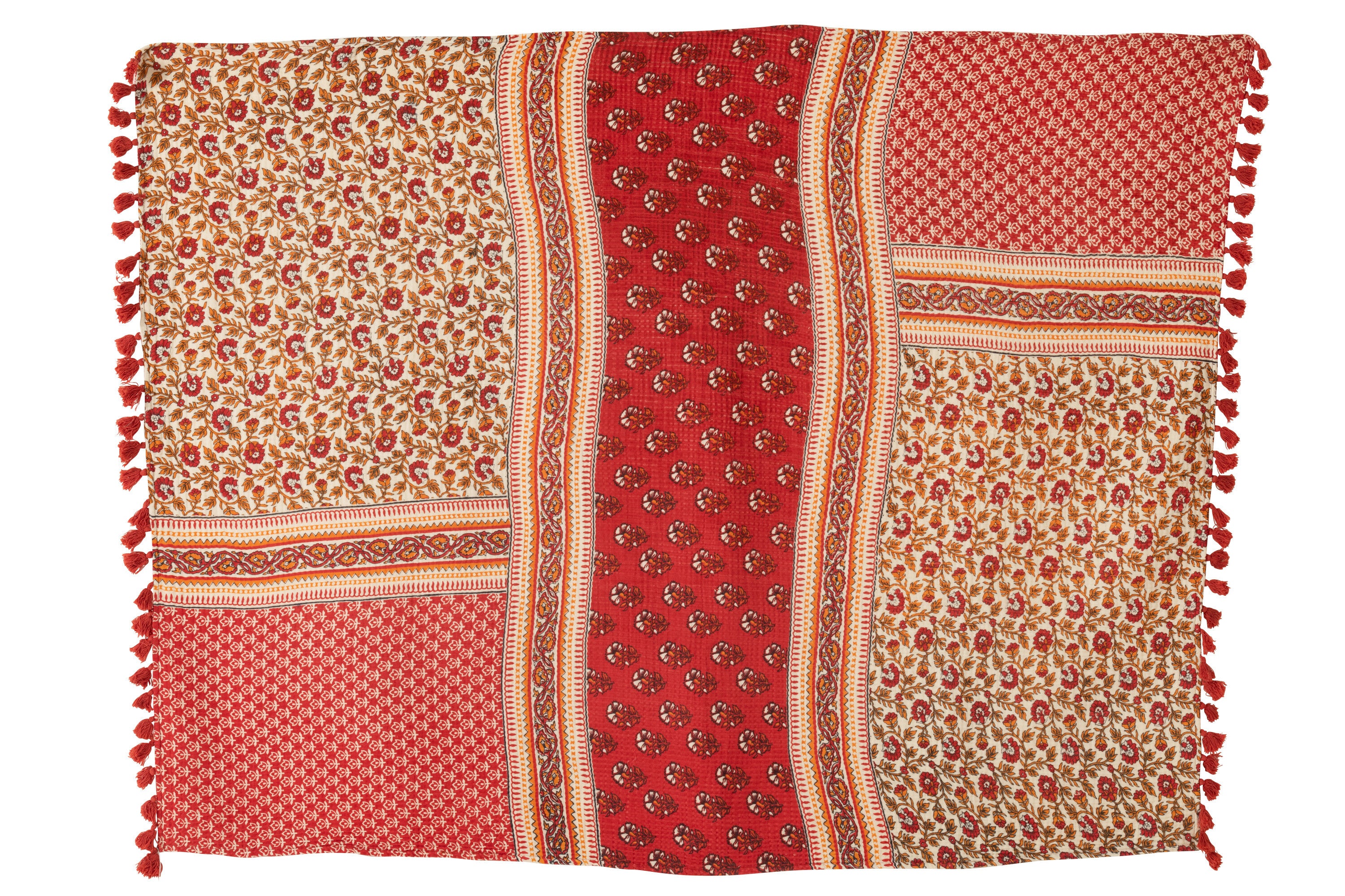 J-Line Plaid bloemen - katoen - rood - 180 x 130 cm
