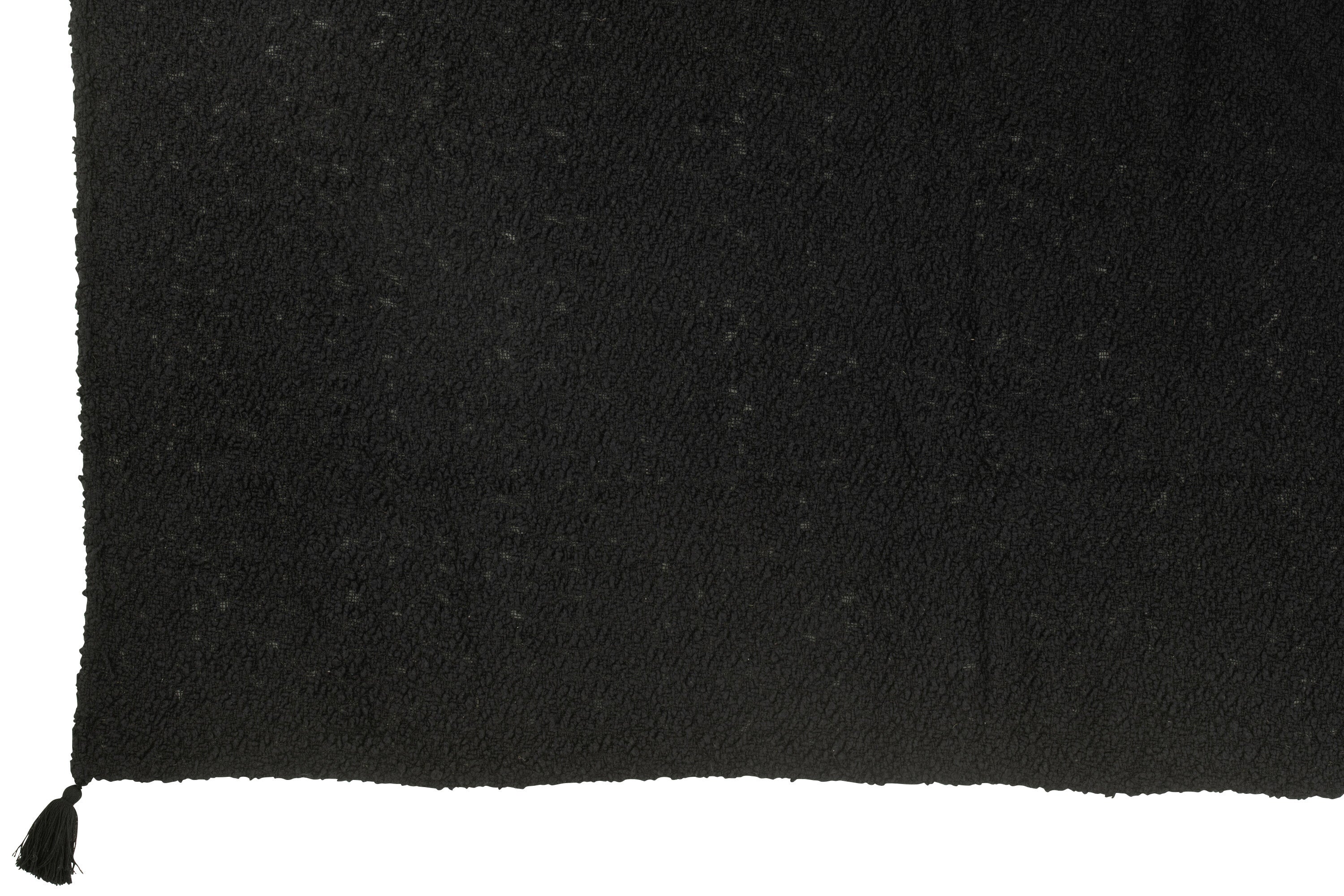 J-line - Plaid Kwasten Katoen Zwart - 180x130x1cm