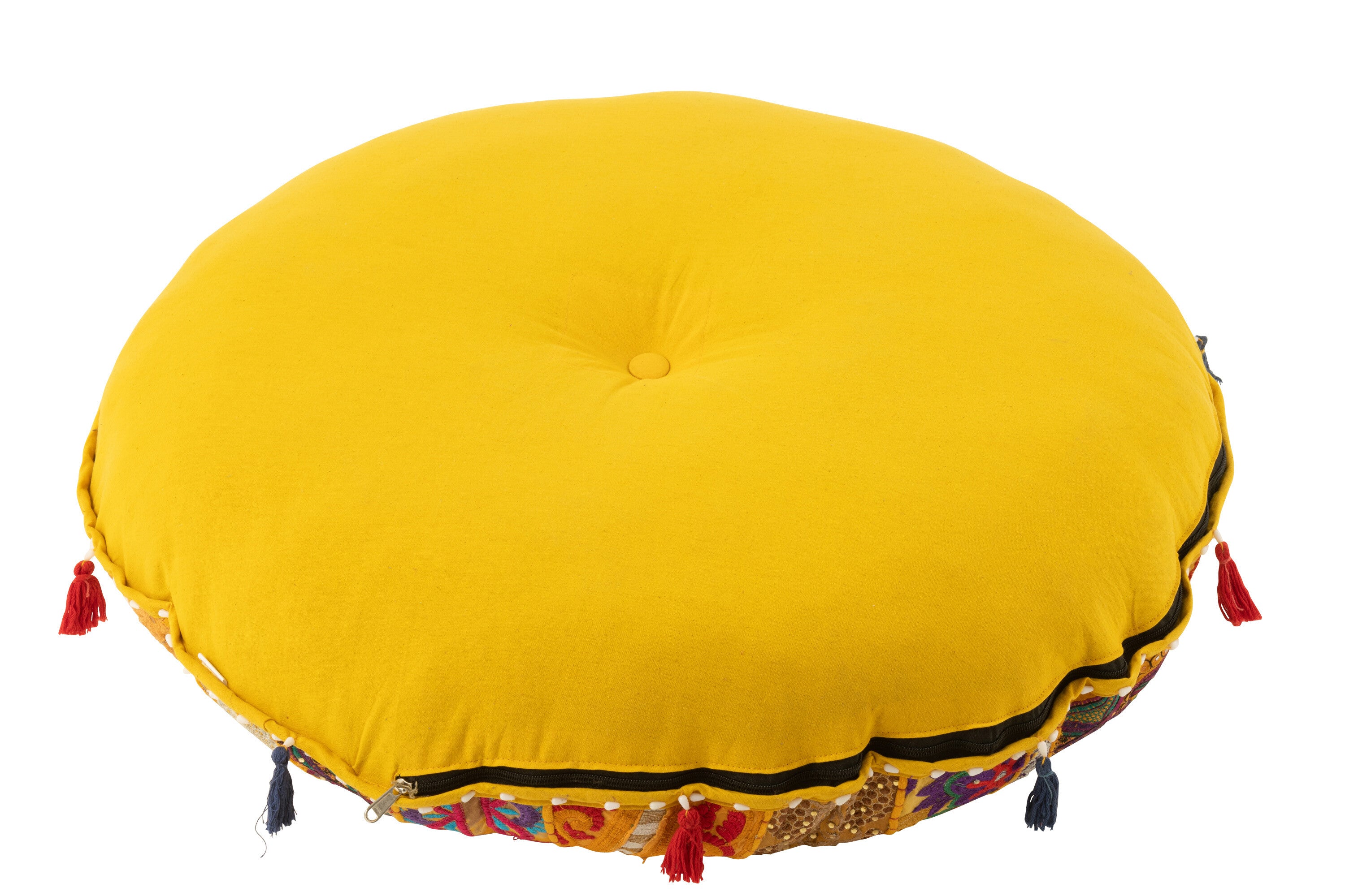 J-Line poef rond plat patronen + kwasten - katoen - geel