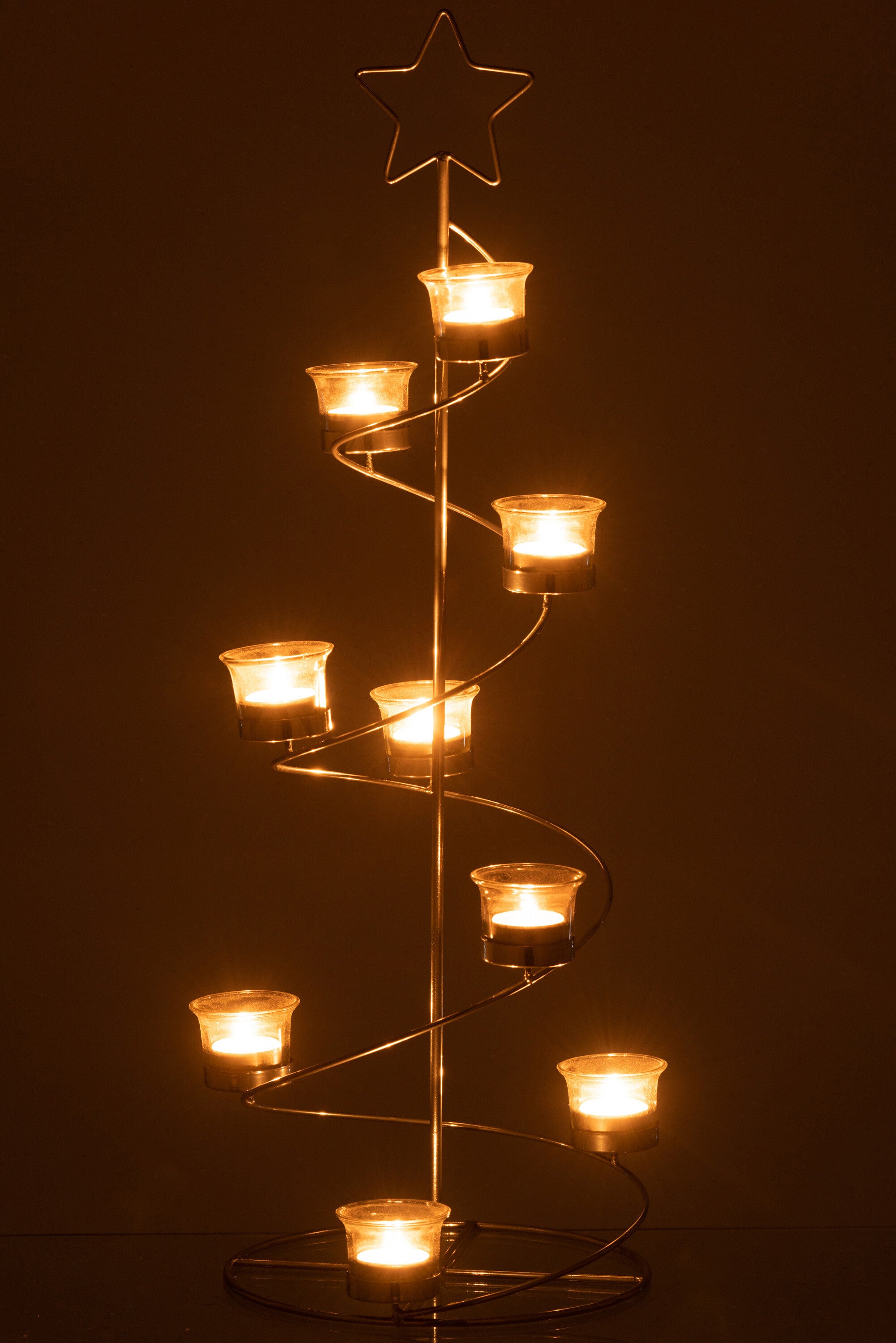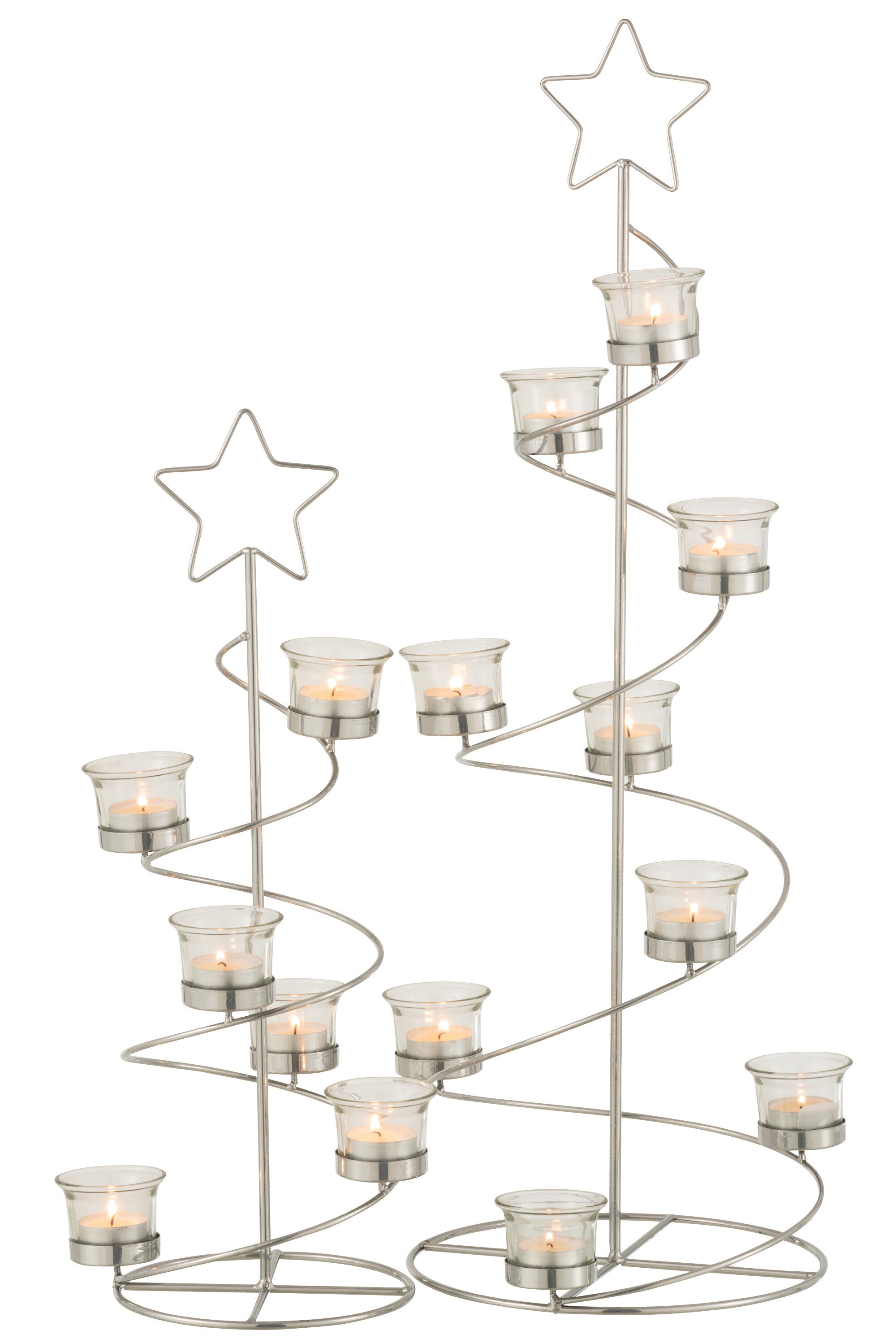 THEELICHTHOUDER BOOM SPIRAAL METAAL/GLAS ZILVER LARGE is gemaakt en ontworpen door het Belgische bedrijf J-Line.