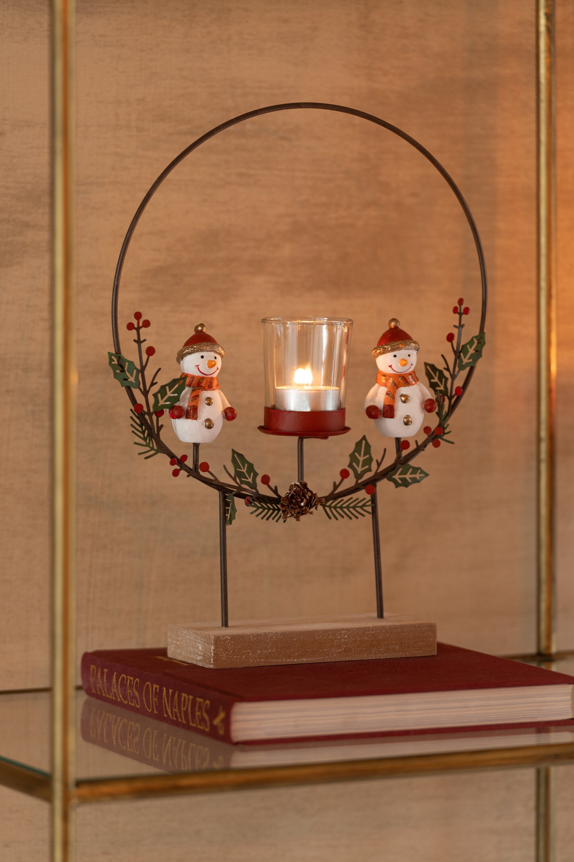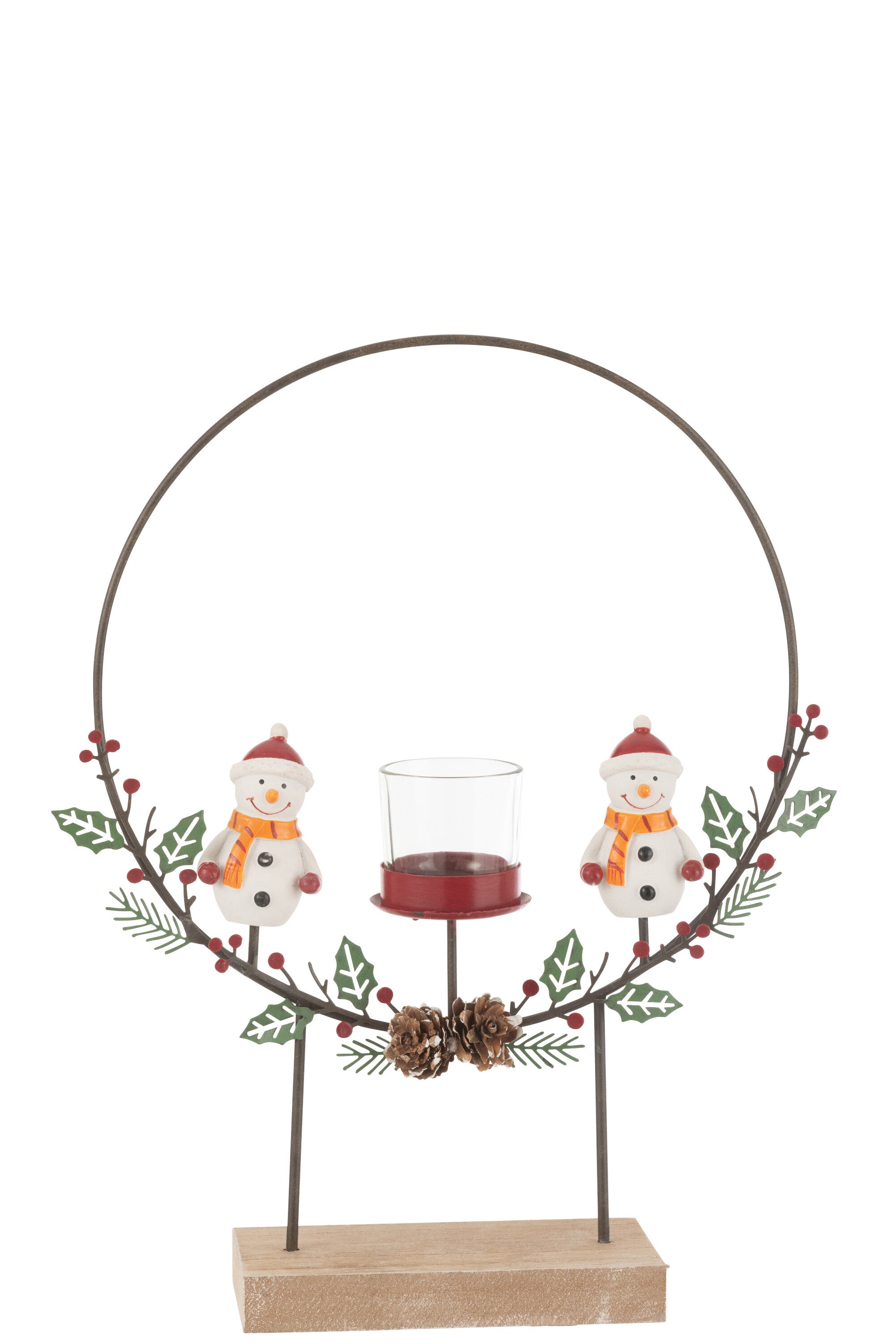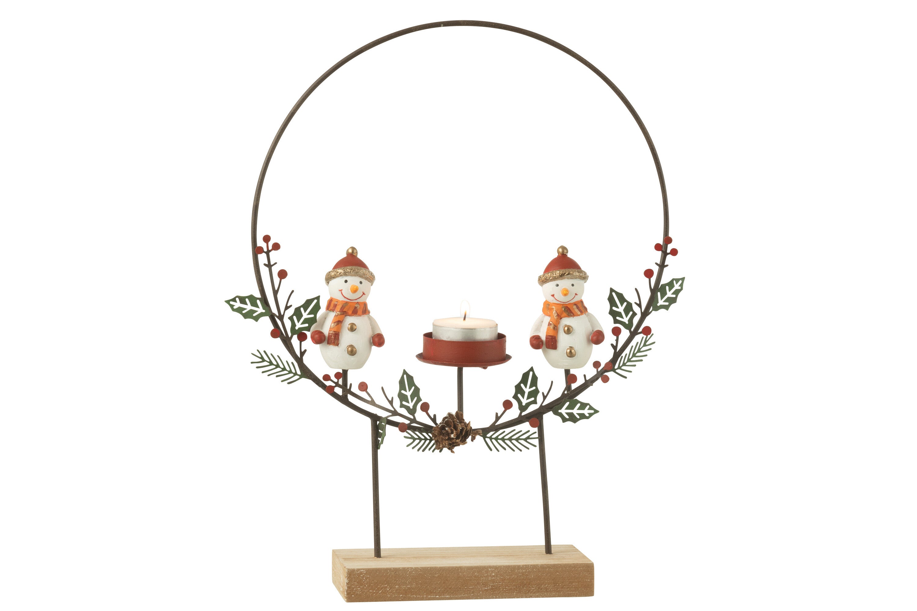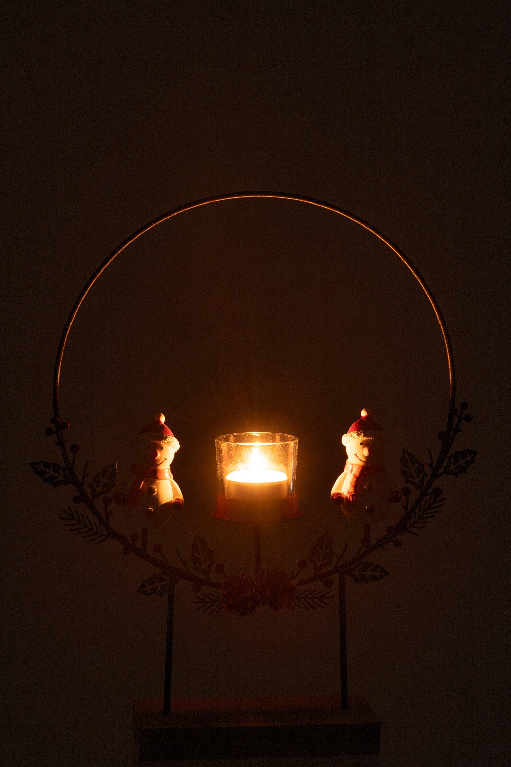 J-Line theelichthouder Cirkel Op Voet + Sneeuwman - metaal - mix