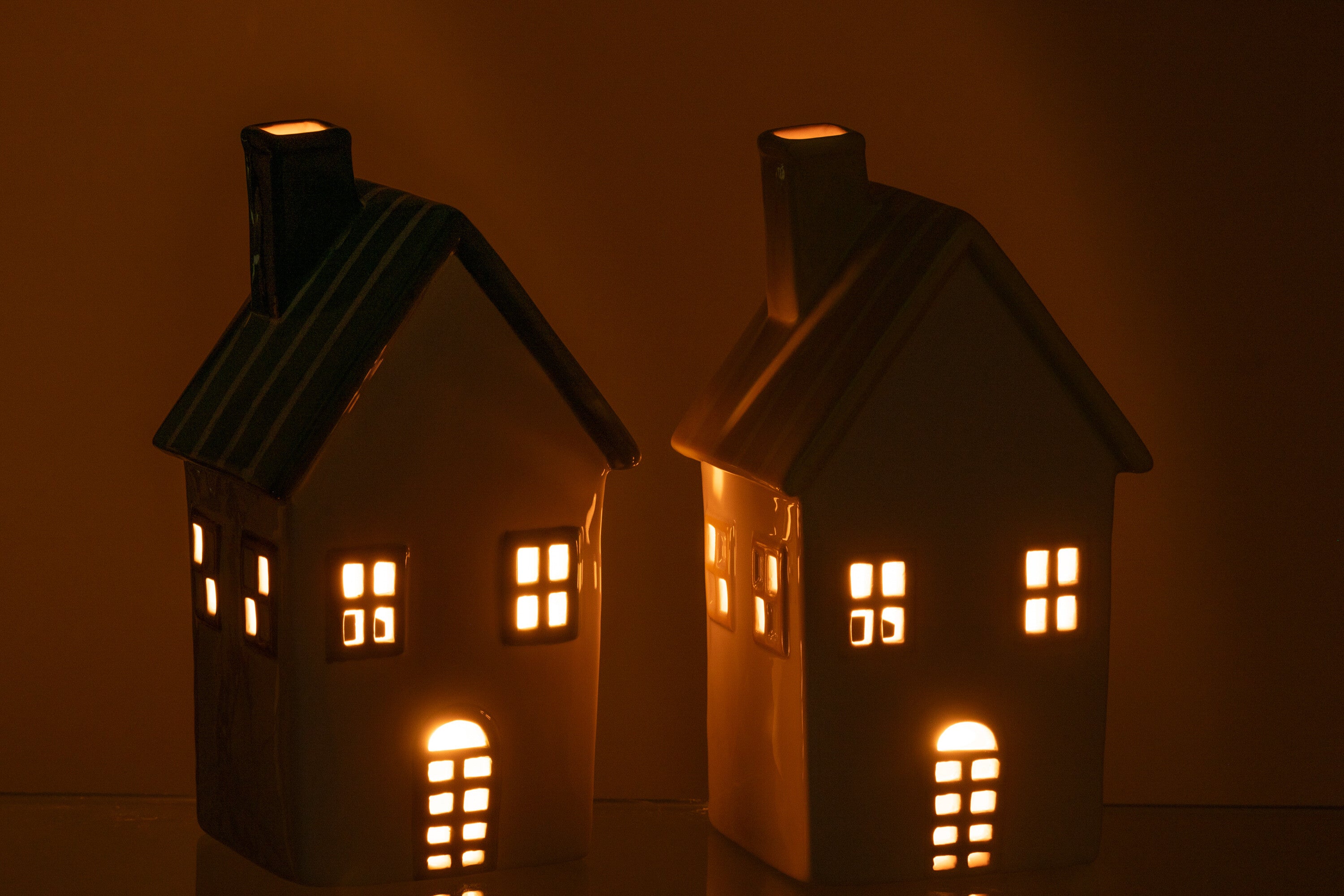 J-Line theelichthouder Huis Dolomiet - keramiek - geel|groen - 2 stuks