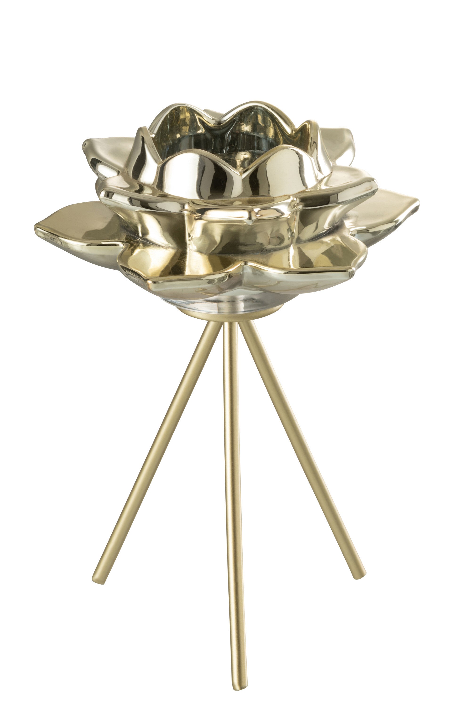 J-Line theelichthouder op voet Bloem - glas - goud - large