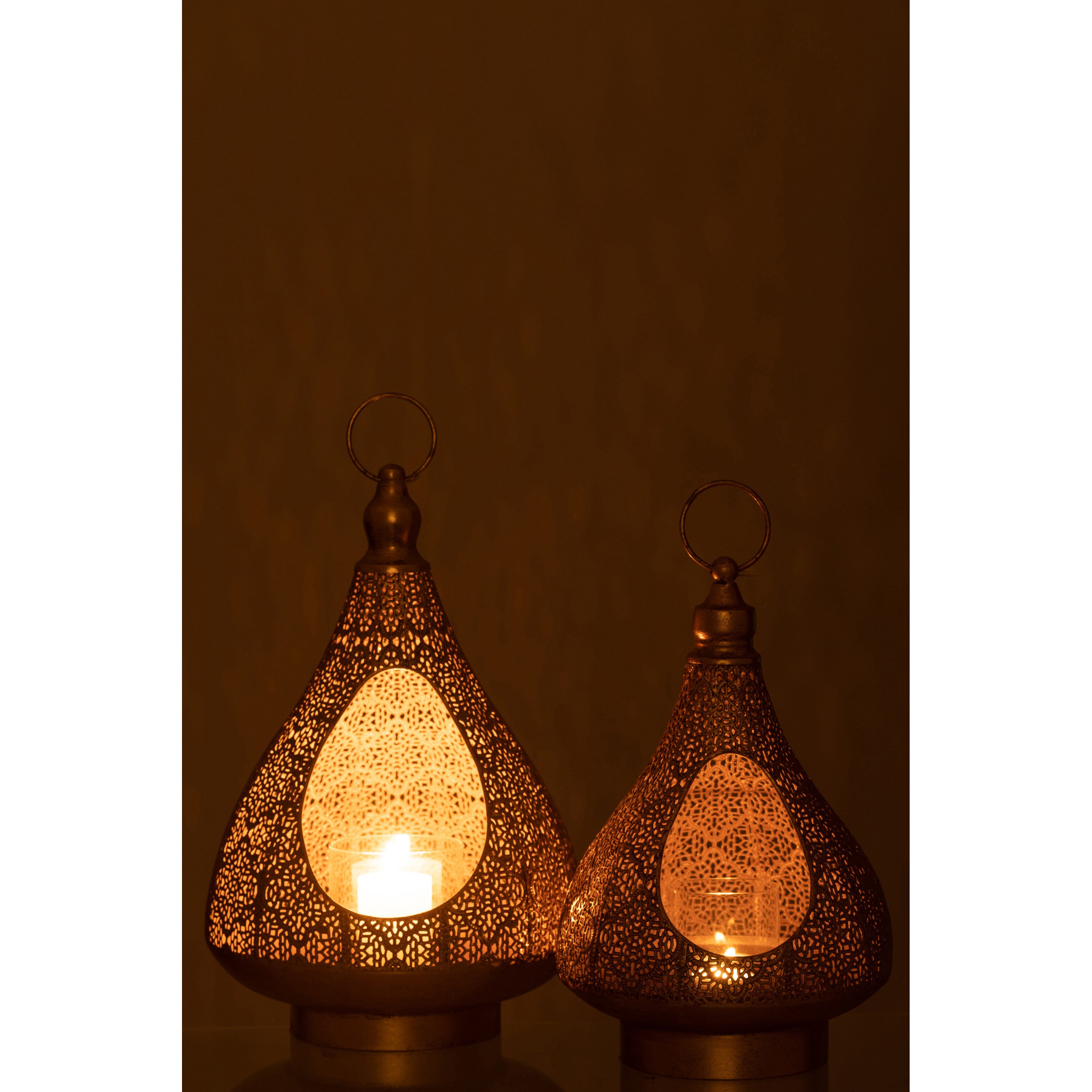 THEELICHTHOUDER OP VOET OOSTERS METAAL/GLAS GOUD LARGE is gemaakt en ontworpen door het Belgische bedrijf J-Line.