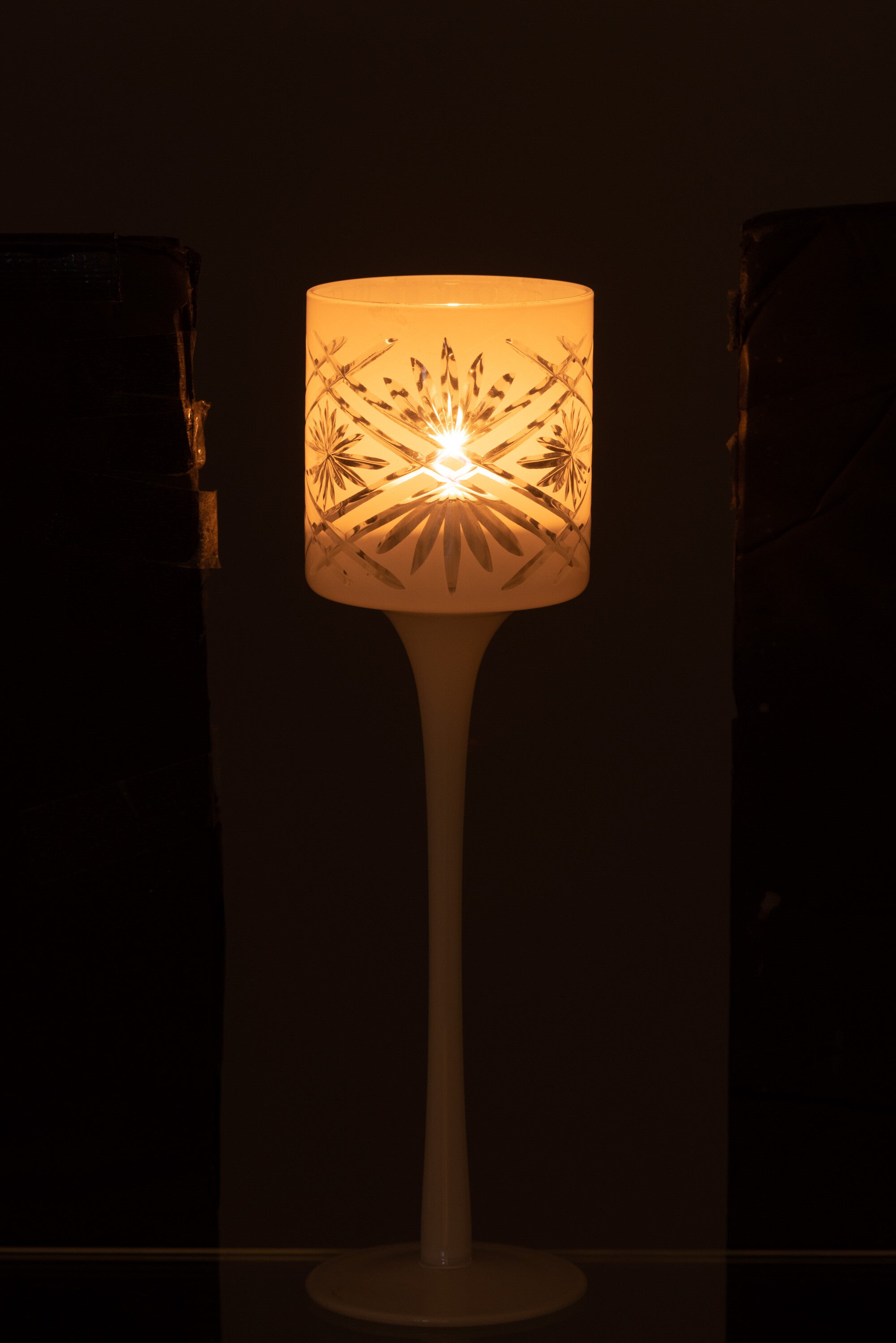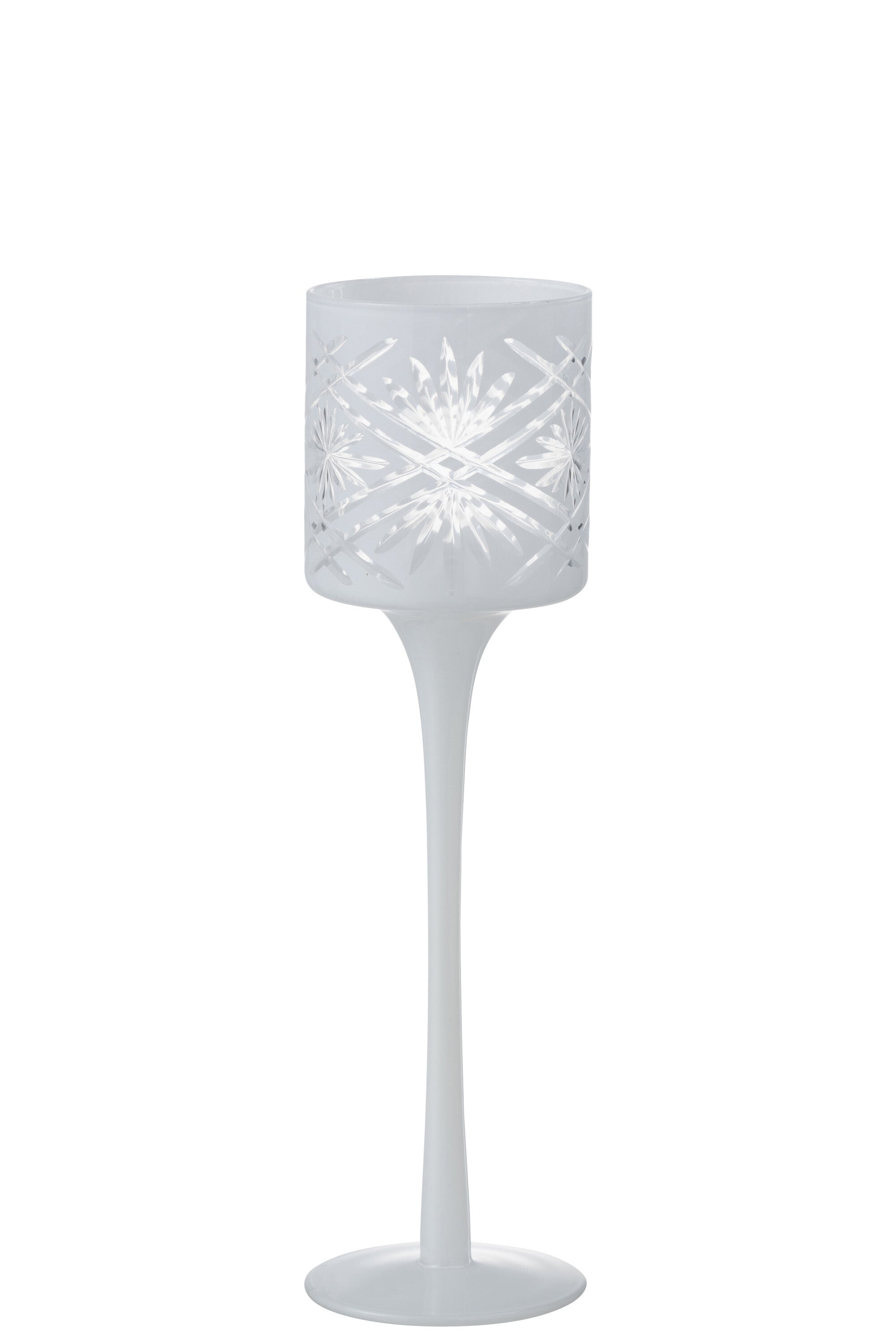 J-Line theelichthouder op voet Santorini - glas - wit - small