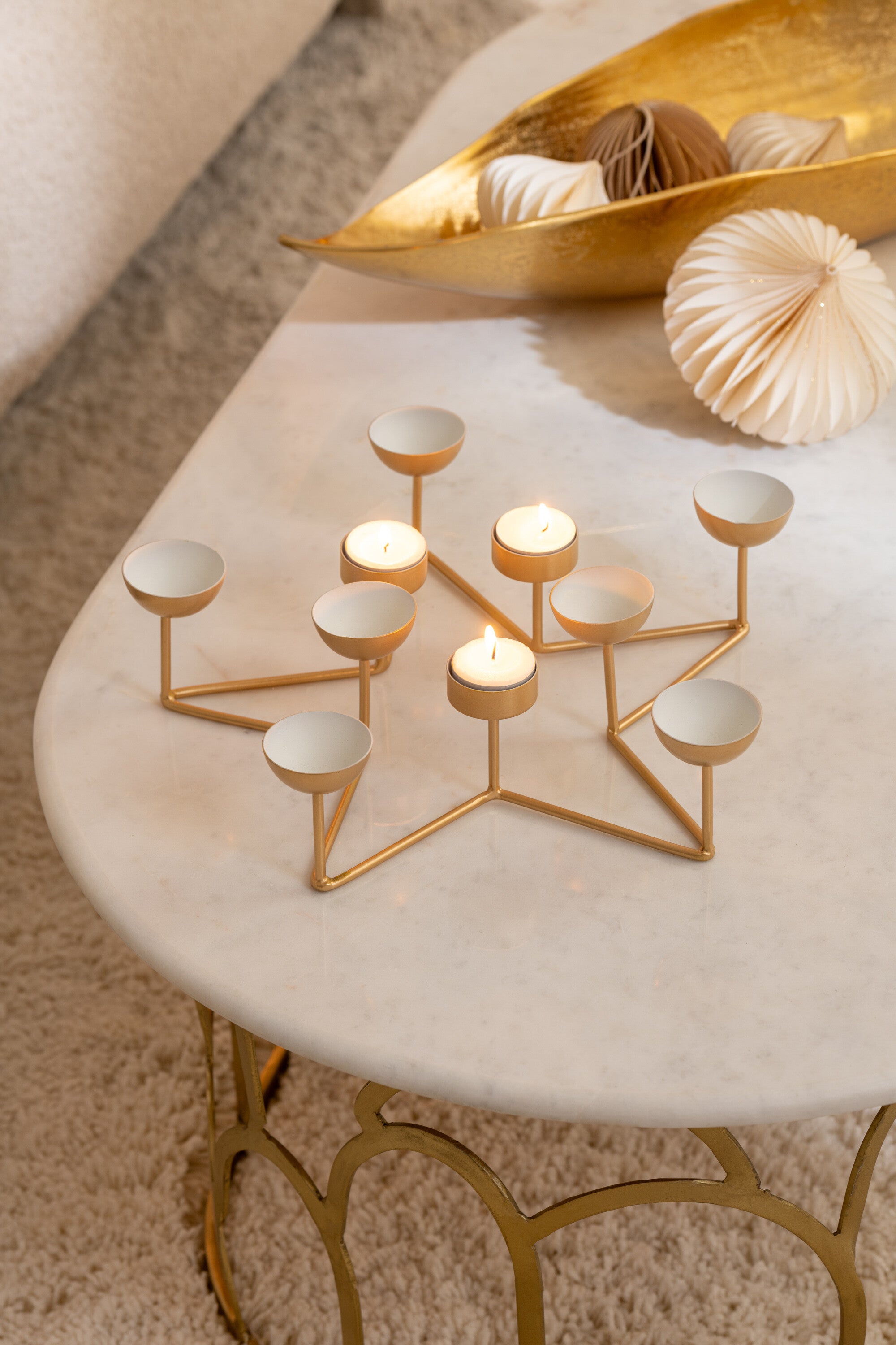 J-Line theelichthouder Ster - metaal- wit|goud