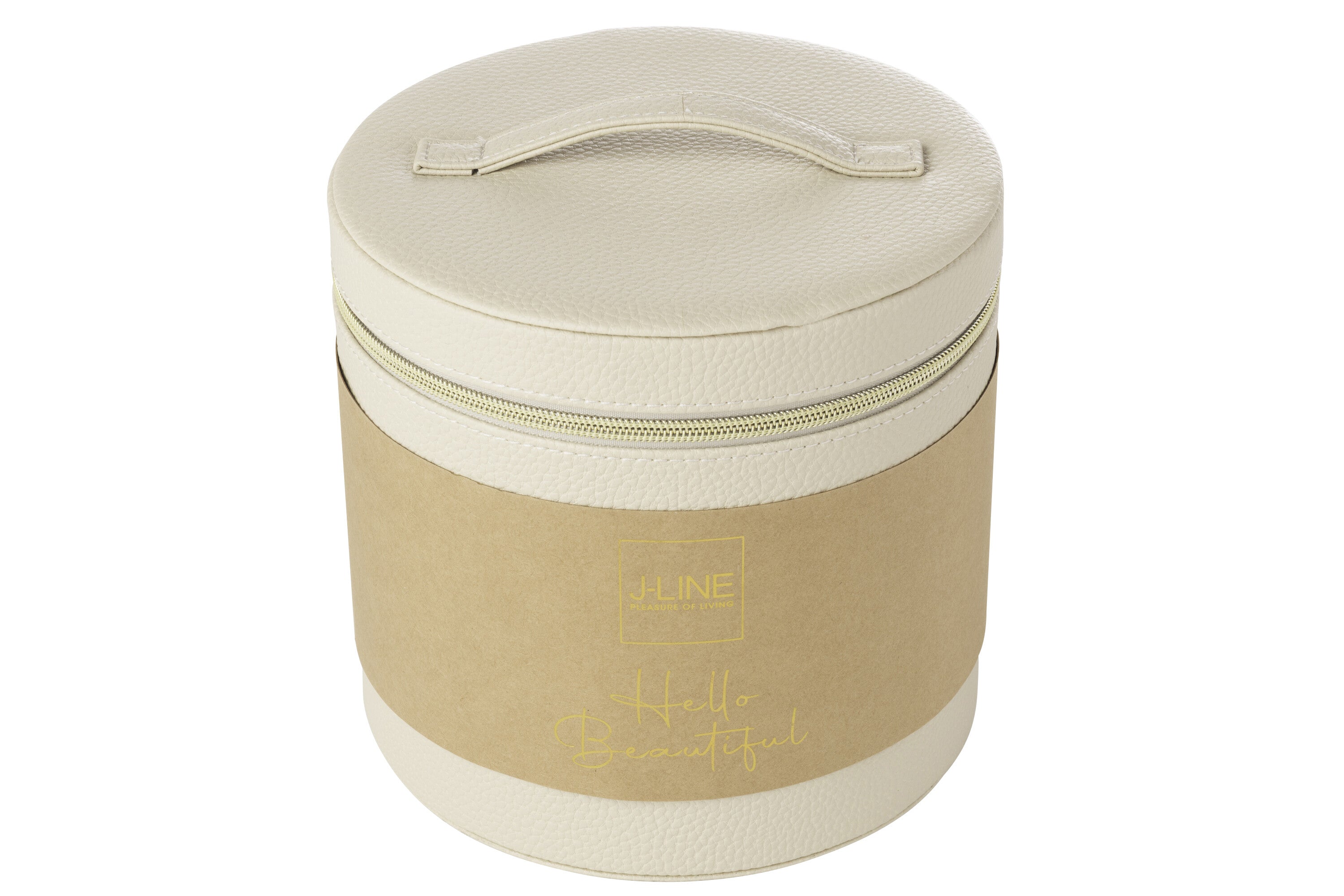 J-Line toilettas Rond + spiegel - kunstleder - beige
