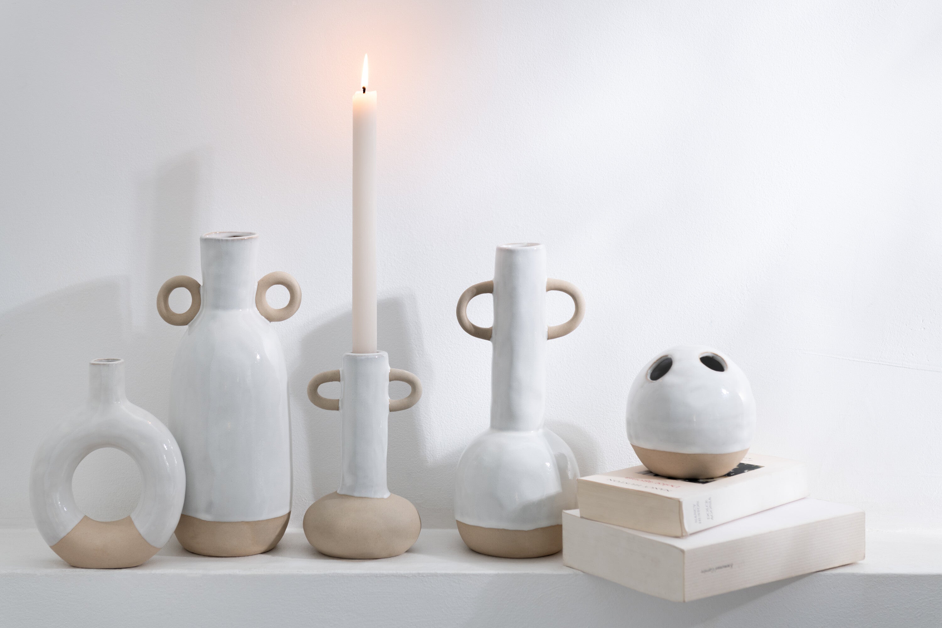 J-Line vaas Cirkel - porselein - wit|beige - small - 2 stuks - 17.5 cm hoog