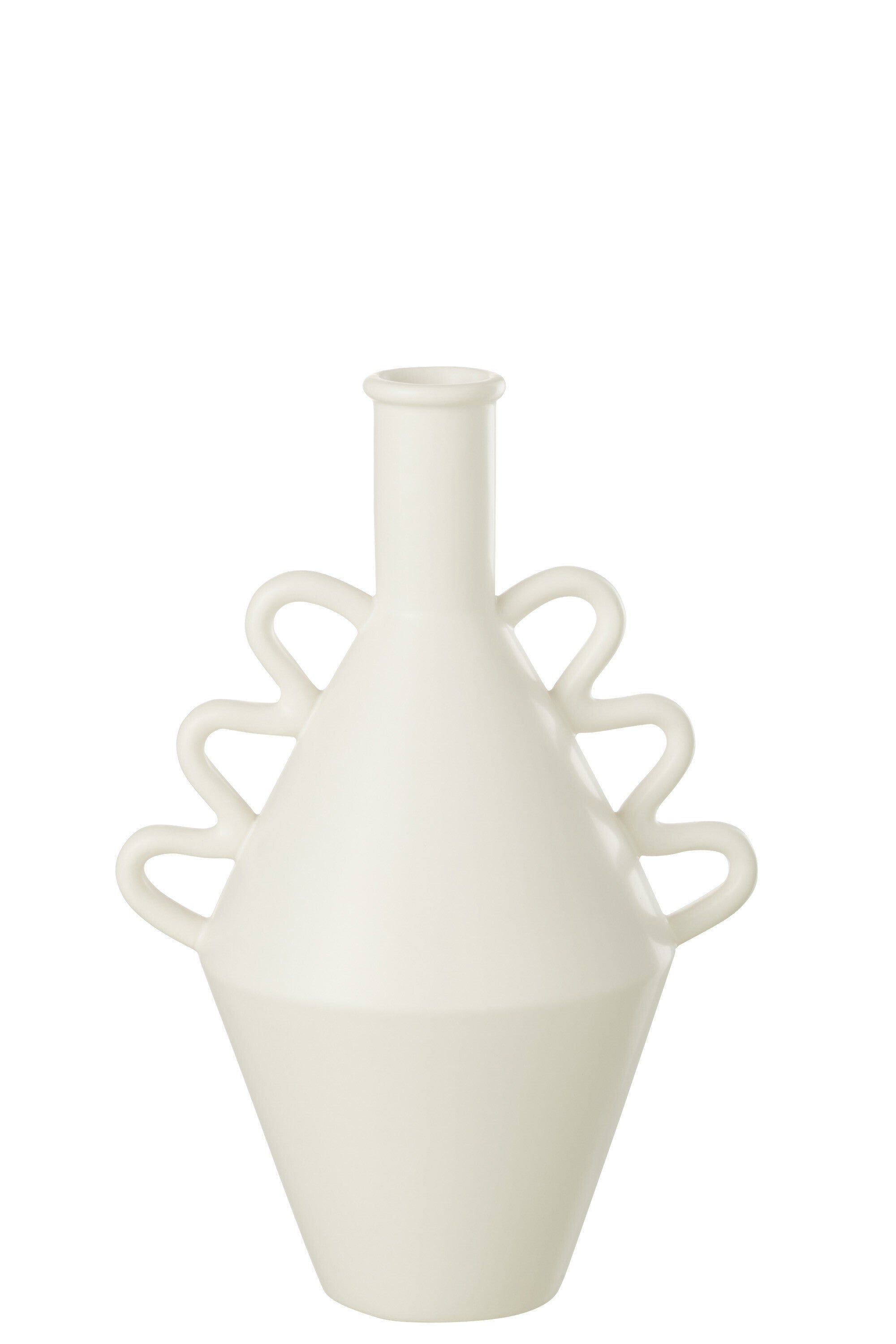 J-Line vaas Golvend Handvat Dolomiet - keramiek - wit - large - 32 cm hoog