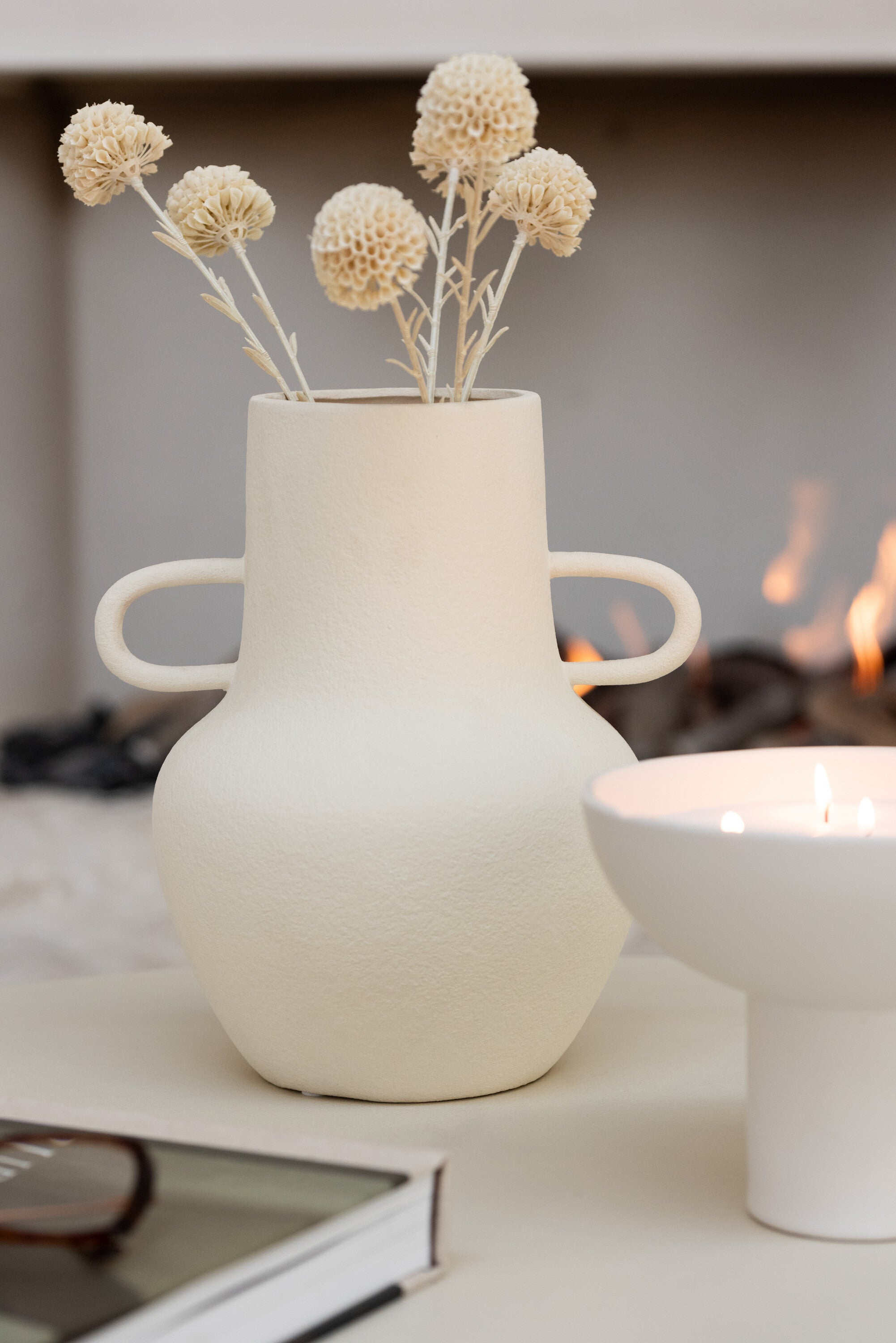 J-Line vaas Kruik 2 Handvat - keramiek - beige - large - 29.5 cm hoog