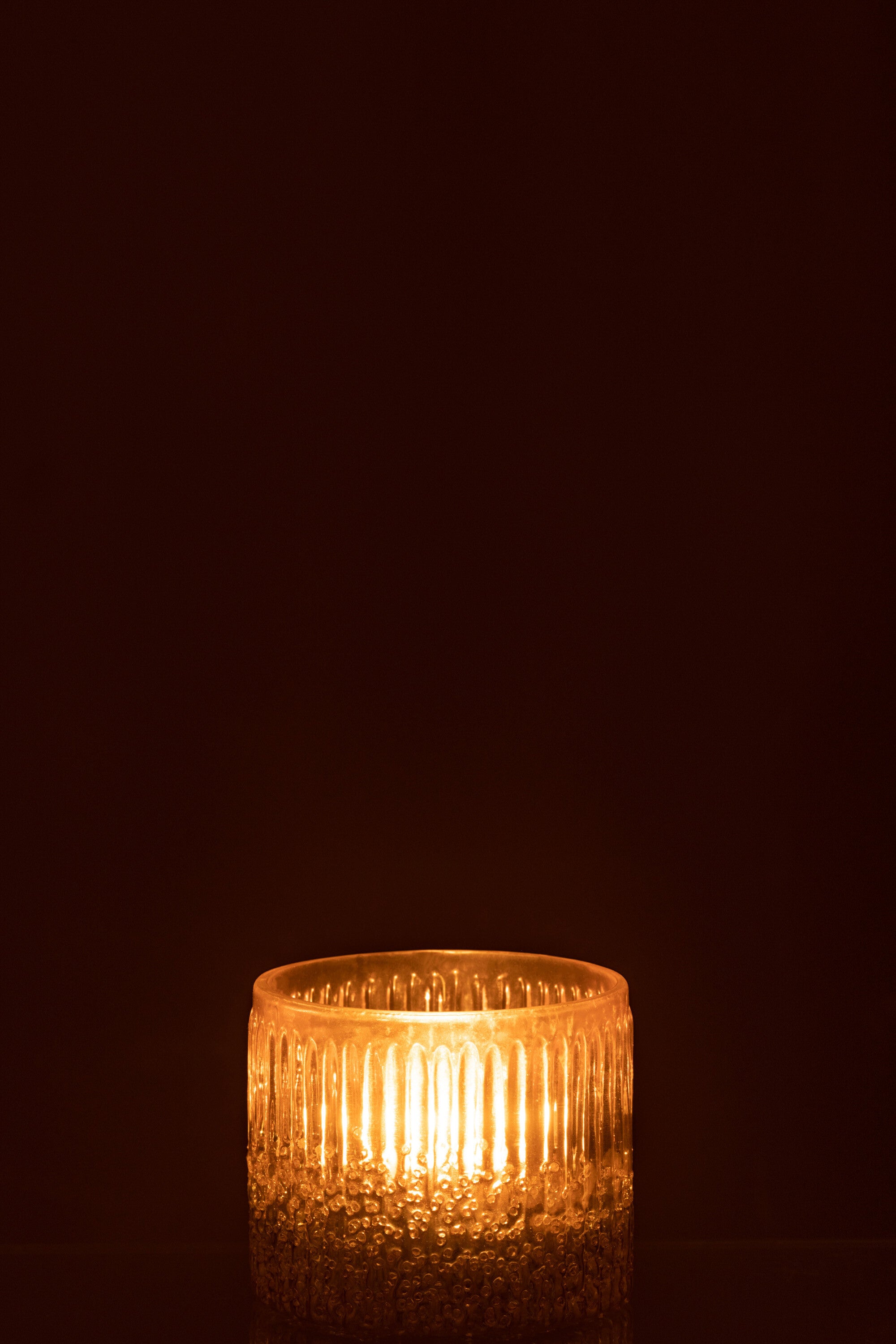 J-Line windlicht Geribbeld - glas - roze - small - 2 stuks