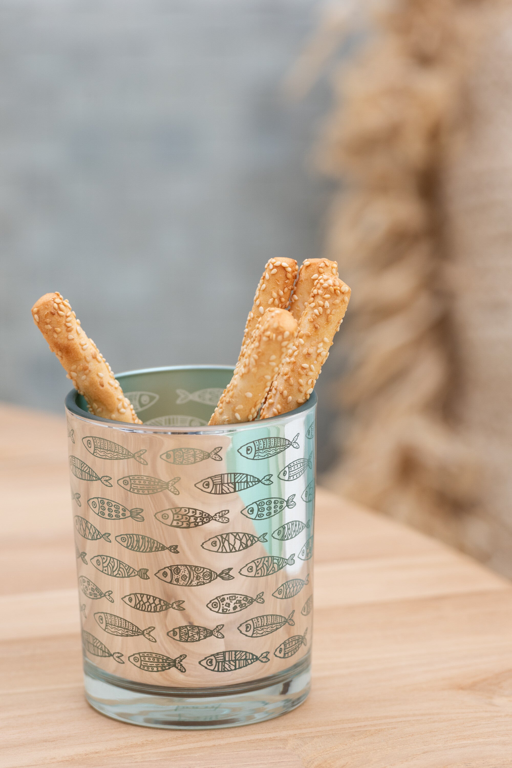 J-Line windlicht Vissen - glas - beige|blauw - small - 2 stuks