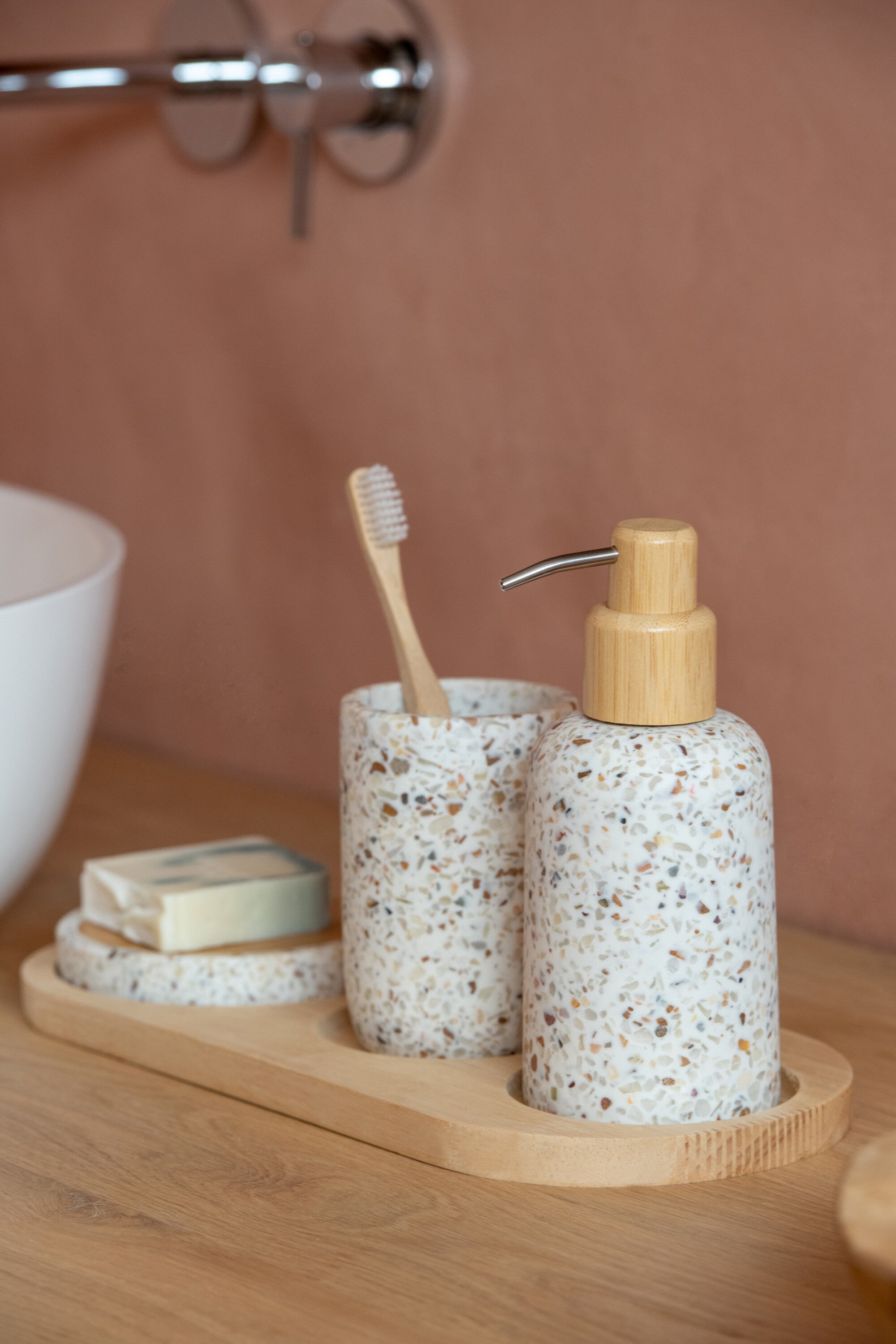 J-Line zeepdispenser On Tray - polyresin - wit|naturel