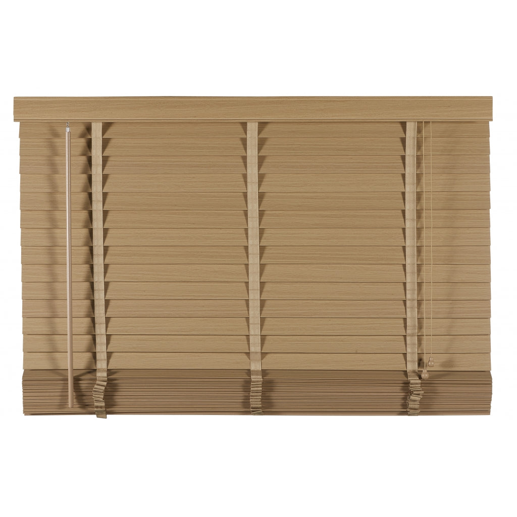 De lindehouten jaloezie in naturel tint straalt warmte uit met zijn natuurlijke uitstraling. Bovenop bevindt zich een aluminium cassette met een afdeklat, voorzien van een luxueus profiel voor een verfijnde afwerking. Zelfs de bedieningskoorden en verticale ladderbanden zijn in een bijpassende kleur, waardoor de jaloezie perfect opgaat in dezelfde warme naturel kleur. De ladderbanden, met een breedte van 25 mm, hebben een prachtige geweven structuur. Stylen met een naturel houten jaloezie: Hout never goes out of fashion! De gezellige sfeer van een houten jaloezie past perfect bij verschillende interieurtrends. Denk aan een inrichting met warme terra en zachte bruintinten, samen met veel groene planten. Hout komt ook goed tot zijn recht in een stoere, industriële setting. De combinatie van hout met zwart vormt dan de ideale basis. Pluspunten: • Scherpe prijs voor perfecte kwaliteit en afwerking • Op en neer beweging door bedieningskoorden • Draaistang om te kantelen • Ophangsteunen voor eenvoudig montage • Makkelijk in te korten • Leverbaar in veel standaardmaten (60 tot 220 cm breed) • In 2 trendy hout kleuren en basic zwart en wit leverbaar Minpunten: • Verduistert niet volledig • Niet geschikt voor vochtige ruimtes, zoals een badkamer Welke maat heb ik nodig? Bedenk van tevoren of je de jaloezie "in of op de dag" wilt hangen, dus in of op het kozijn. Wanneer je ze in de dag hangt, heb je geen last van de zijkanten die na het versmallen onafgewerkt zullen zijn. Dat zit dan mooi verborgen. Het voordeel van op de dag monteren is dat het beter verduistert dan in de dag montage. Let op: het inmeten is een secuur klusje. We adviseren om altijd 2x te meten om vergissingen te voorkomen. Montage op de dag (op het plafond of vlak boven het raam) 1. Meet voor de breedte het raam op 3 plaatsen 2. Voeg daar aan beide kanten 5 cm extra aan toe 3. Meet voor de lengte de hoogte tot aan de vensterbank of tot aan de vloer. Houd rekening met de hoogte van het ophangsysteem 4. Trek hier 1 cm vanaf Montage in de dag (tussen de kozijnen) 1. Houd rekening met draaiende en uitstekende delen, zoals hendels en grepen 2. Meet de breedte tussen het kozijn of de muren op 3 plaatsen 3. De breedte is de smalst gemeten maat. Trek hier 1 cm vanaf 4. Meet de lengte tussen het kozijn of muur en de vensterbank op 3 plaatsen 5. De lengte is de kortst gemeten maat. Indien je de jaloezie tot op de vensterbank wilt, trek er dan 1 cm vanaf Eenvoudige montage: 1. Volg eerst bovenstaande stappen voor het correct meten van de juiste maat jaloezie. 2. Meet en teken de plaats af waar de ophangsteunen moeten komen 3. Zorg dat er genoeg speling is voor wanneer je de cassette met jaloezie in de steunen hangt. 4. Hang de extra beugel ter ondersteuning op, maar niet in het midden. Anders zit deze beugel op dezelfde plek als het ladderband. 5. Hang de jaloezie op door de cassette in de ophangsteunen te hangen en klik deze dicht. 6. Bevestig de ophangbeugels aan de afdeklat en schuif de afdeklat met beugels op de cassette. Je kunt gebruik maken van het dubbelzijdige tape om de afdeklat vast te maken. 7. Indien nodig kun je de lengte van de jaloezie inkorten (zie onderstaande stappen). Lengte jaloezie inkorten: 1. Hang de jaloezie languit naar beneden bij het op maat maken van de lengte. Zo kun je goed bepalen hoeveel lamellen er tussenuit moeten voor de juiste lengte. 2. Aan de onderzijde zitten doppen ter afwerking van het katoenen ladderband en het koord. Deze doppen kun je er makkelijk met je vingers of anders met een platte schroevendraaier uitduwen. 3. Na het weghalen van de doppen worden de knoopjes van de koorden zichtbaar. Het is soms even friemelen, maar haal de knopen los. 4. Nu zie je vaak meteen hoeveel lamellen er tussenuit moeten. Verwijder eerst de onderste, wat bredere, afwerk lamel en daarna het teveel aan lamellen. Schuif de brede afwerklamel weer tussen het ladderband en rijg het koord er doorheen. Maak de knoopjes opnieuw vast. 5. Knip het ladderband op de juiste lengte af. Zorg ervoor dat je dat niet te kort doet. Check onderaan even hoe dat eerder gedaan is en knip op dezelfde wijze het teveel aan band af. Plaats het ladderband met de doppen weer terug in de afwerk lamel, precies zoals het eerst zat. 6. Als finishing touch kun je ook het bedieningskoord op de juiste lengte maken. Duw de houten klosjes omhoog en knoop het koord hoger (op de juiste lengte) weer vast. Knip het overtollige koord aan de onderkant af en duw de klosjes weer terug naar beneden over de knoopjes heen. Nu is de look helemaal af. Onderhoud: Om je houten jaloezie in topvorm te houden is regelmatig onderhoud belangrijk. Om ze snel op te frissen gebruik je een stofdoek, plumeau of de stofzuiger. Draai de jaloezieën dicht en ga er met een stofdoek of plumeau overheen. Het kan ook met de stofzuiger, zet ‘m dan wel op de laagste stand en gebruik een kleine opzetborstel. Voor een wat diepere reiniging kun je de lamellen afnemen met een licht vochtige doek en een zacht reinigingsmiddel.| Afmetingen | |