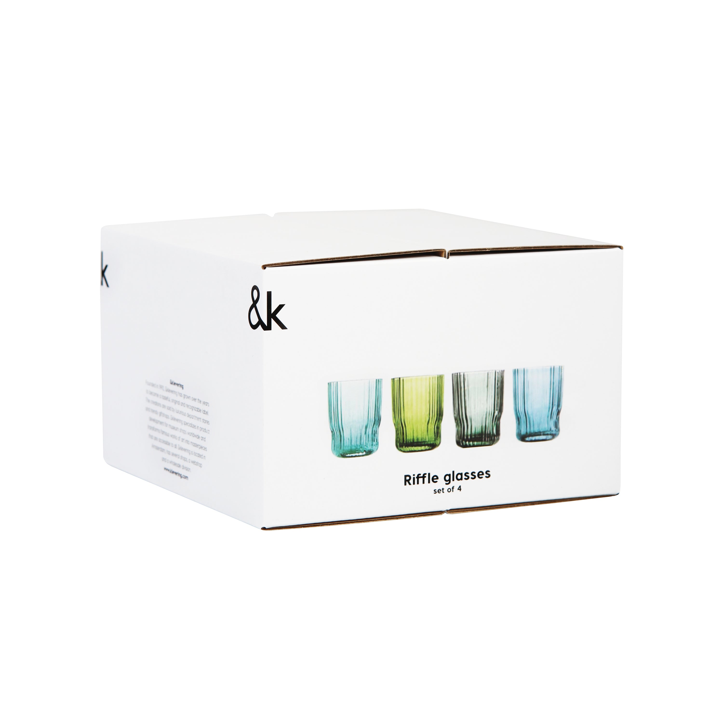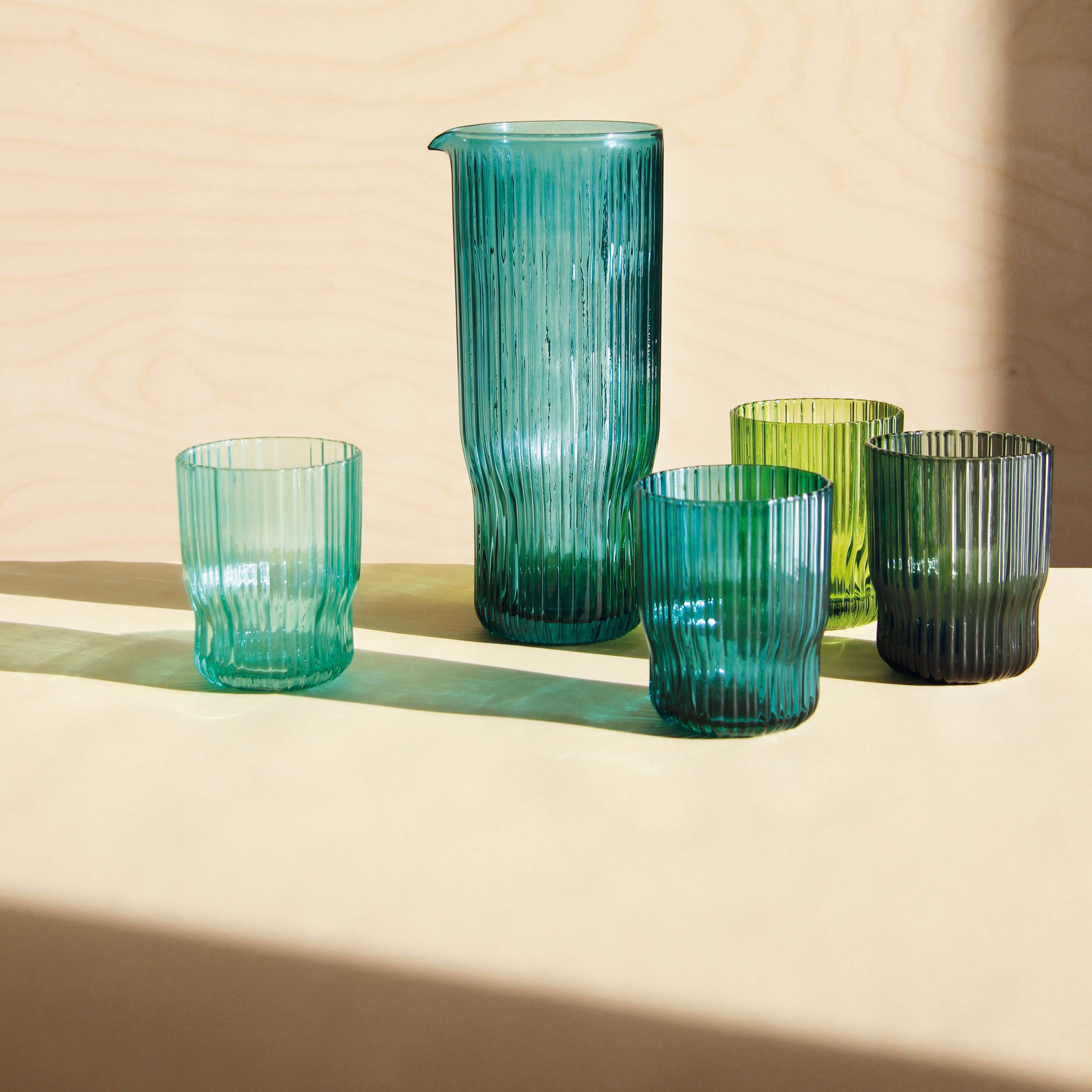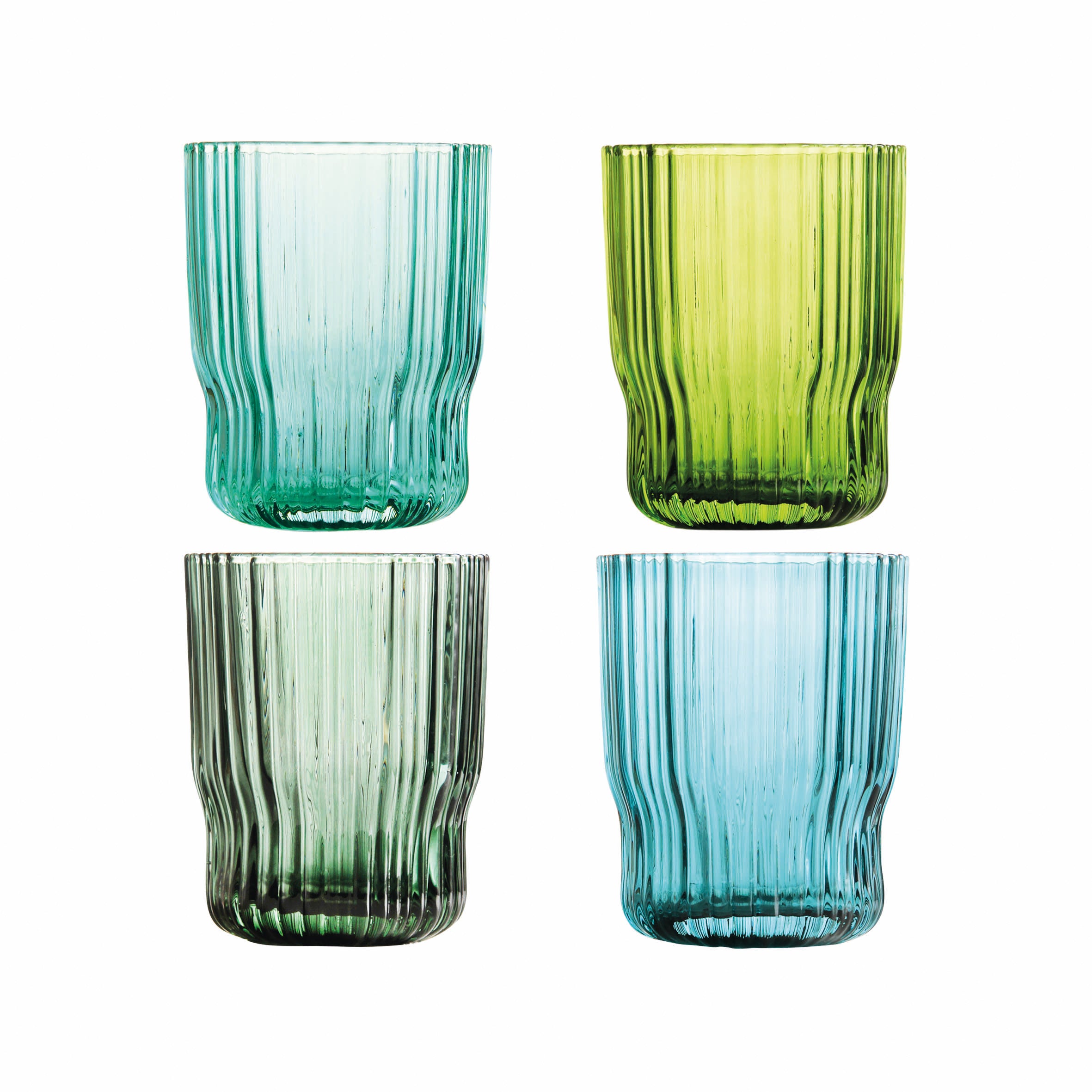 - Een set van vier groen gekleurde glazen voor koude drankjes