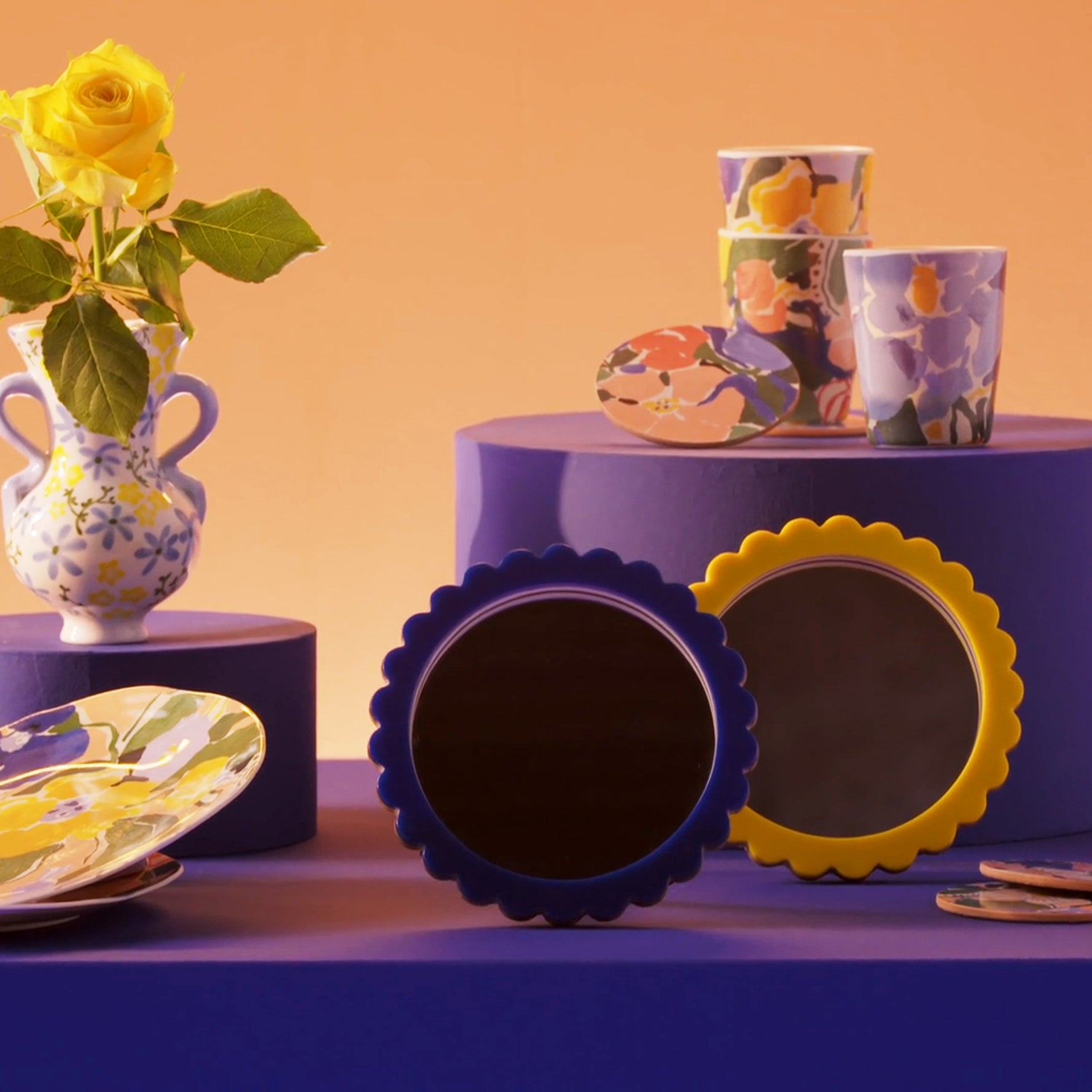 &k amsterdam Spiegel Bloem - Ø 17 cm - Blauw